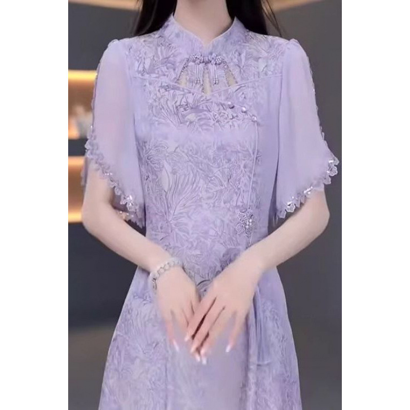 気質中国の高貴な若い母親のチャイナドレス女性のための 2025 夏スリム古代スタイルの中国風のスカート女性のための
