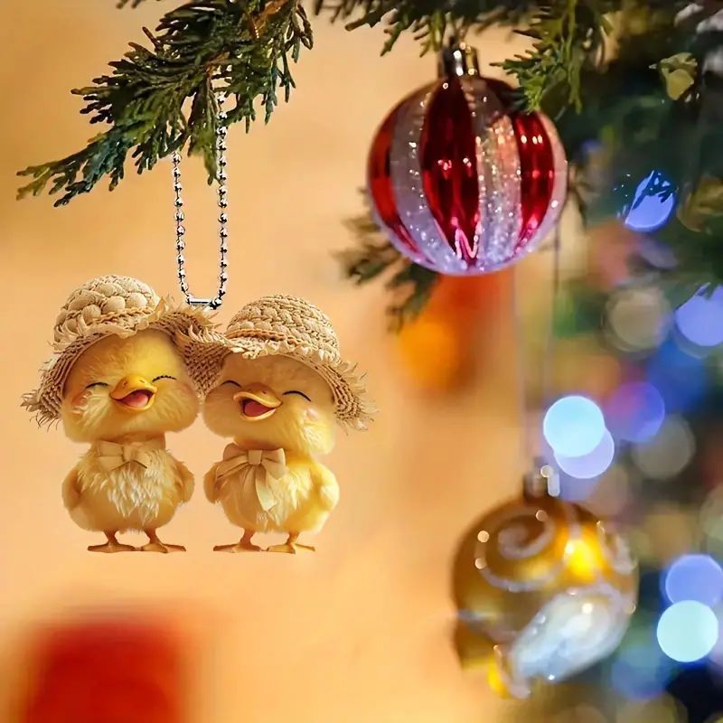 アクリル自動車吊り下げ装飾品かわいい黄色アヒルのキーホルダー装飾性2D自動車内装配