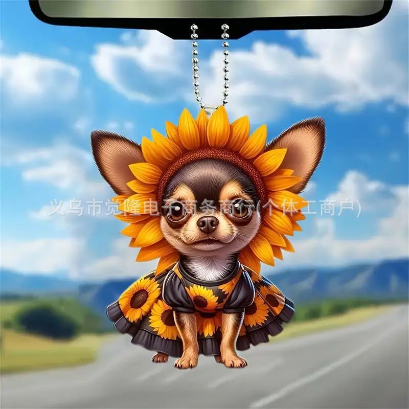 創意新作2dひまわりのチワワはクロスボーダーのアクリル平面の自動車の中でペンダントの家庭の装飾品を掛けます。