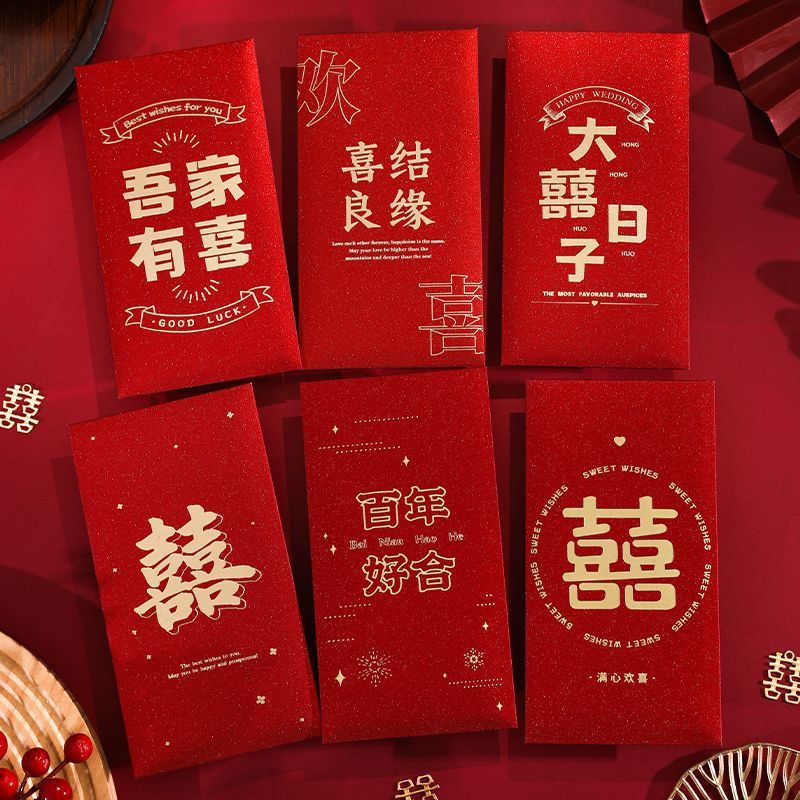 新しいつや消し結婚式の赤い封筒、軽い豪華なハッピーワード千元特別な結婚式のウェディング用品