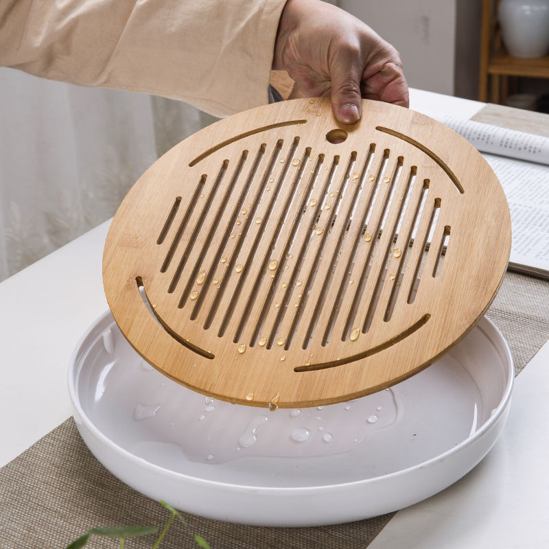 カンフーティーセットティートレイ家庭用シンプルな円形長方形日本製竹水貯蔵ポータブル排水ティートレイ