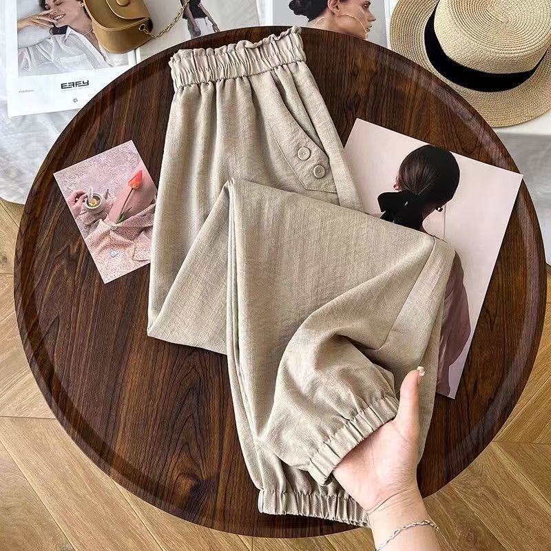 女性のためのカジュアルなコットンとリネンのワイドレッグパンツ 2025 春夏の新しいホットスタイルママパンツルーズストレート無地 9 点パンツ