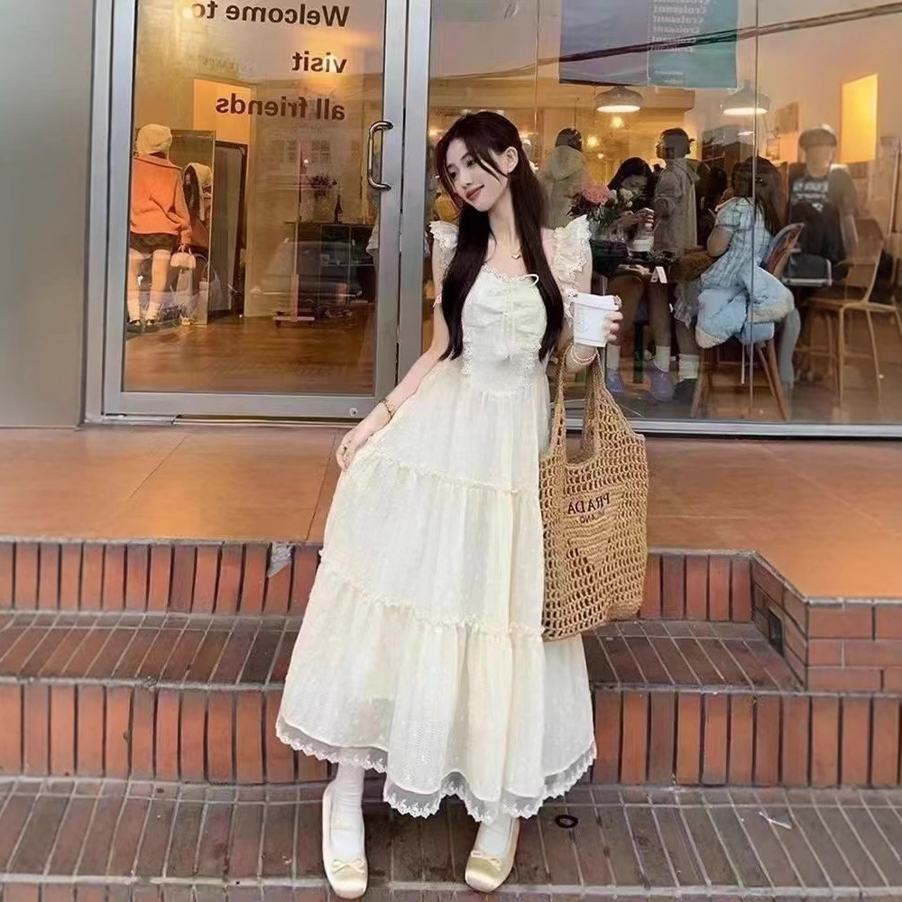 フレンチピュアラブスタイル初恋白サスペンダードレスレディースサマードレス2025新作優しい白月光スカートロングスカート