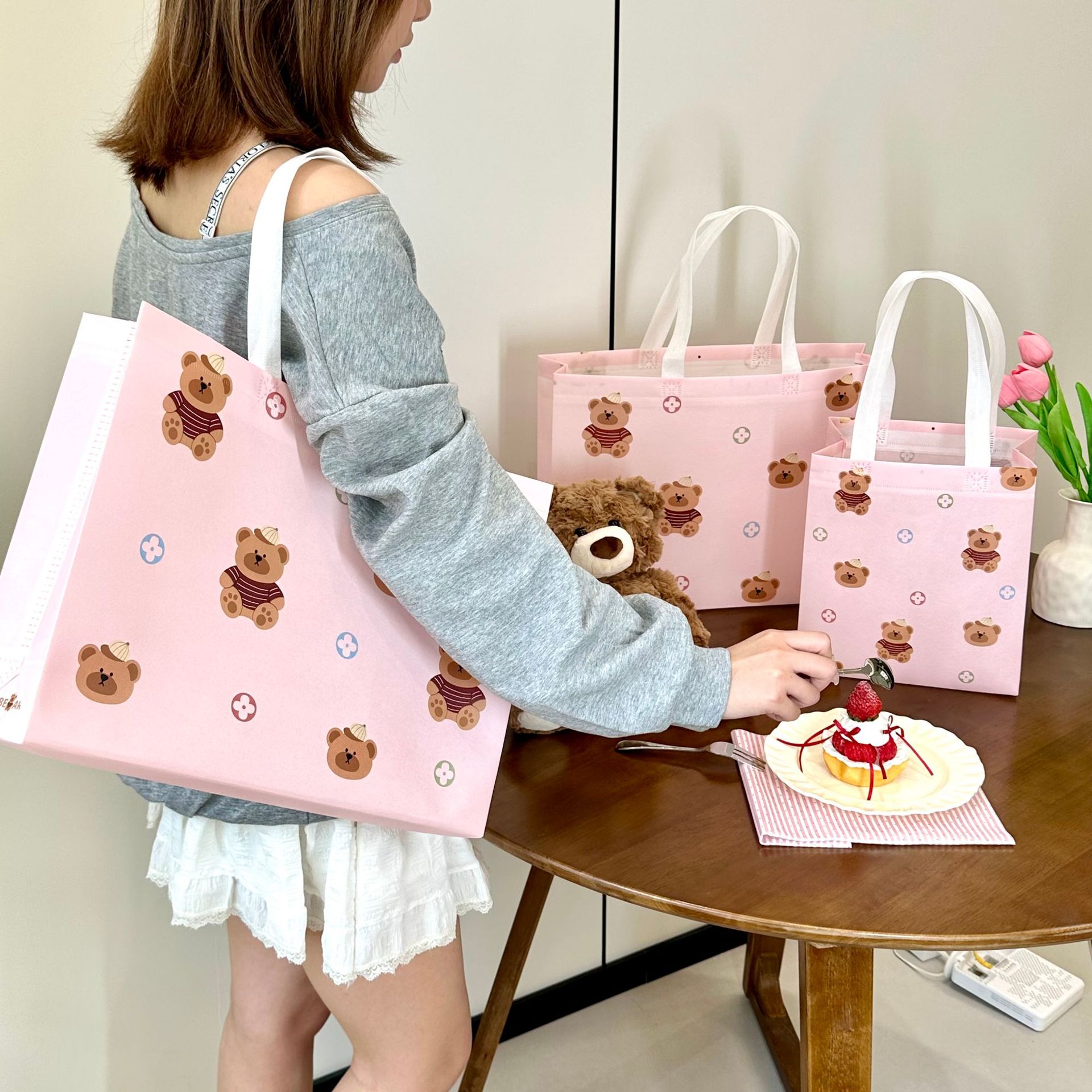 袋高楽婦人服店デパート服装店ショッピング手提げ袋宣伝広告覇膜不織布袋カスタム