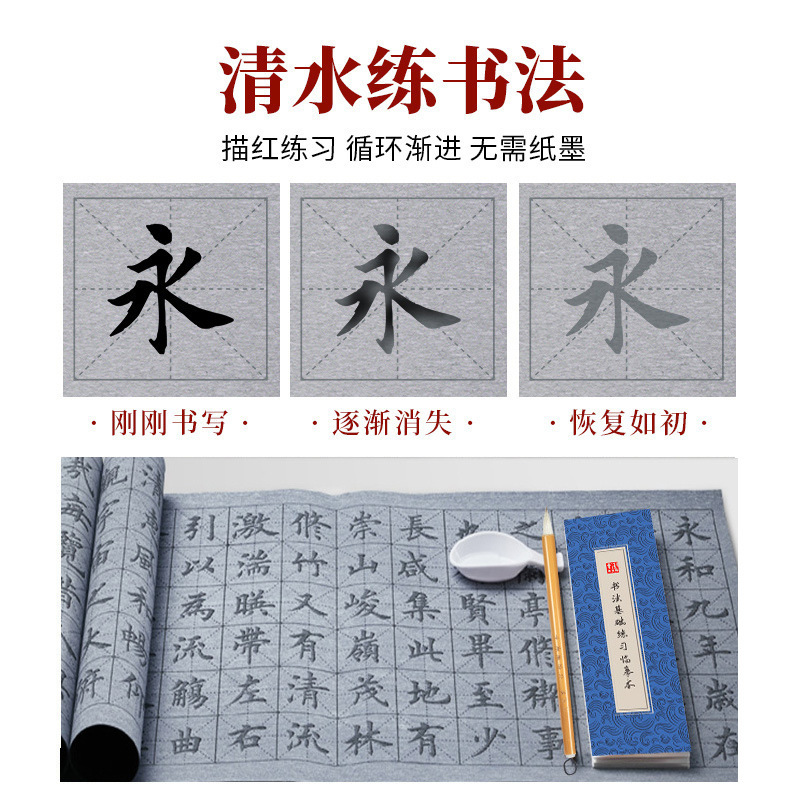 筆水書き布コピーブック増粘不織布米字グリッド空白清水練習用水書き布スクロールセット