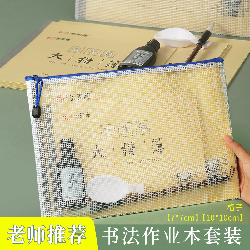 7 センチメートル米字グリッドラフエッジ紙学生筆書道ワークブック 8 オープン大文字練習収納袋筆セット