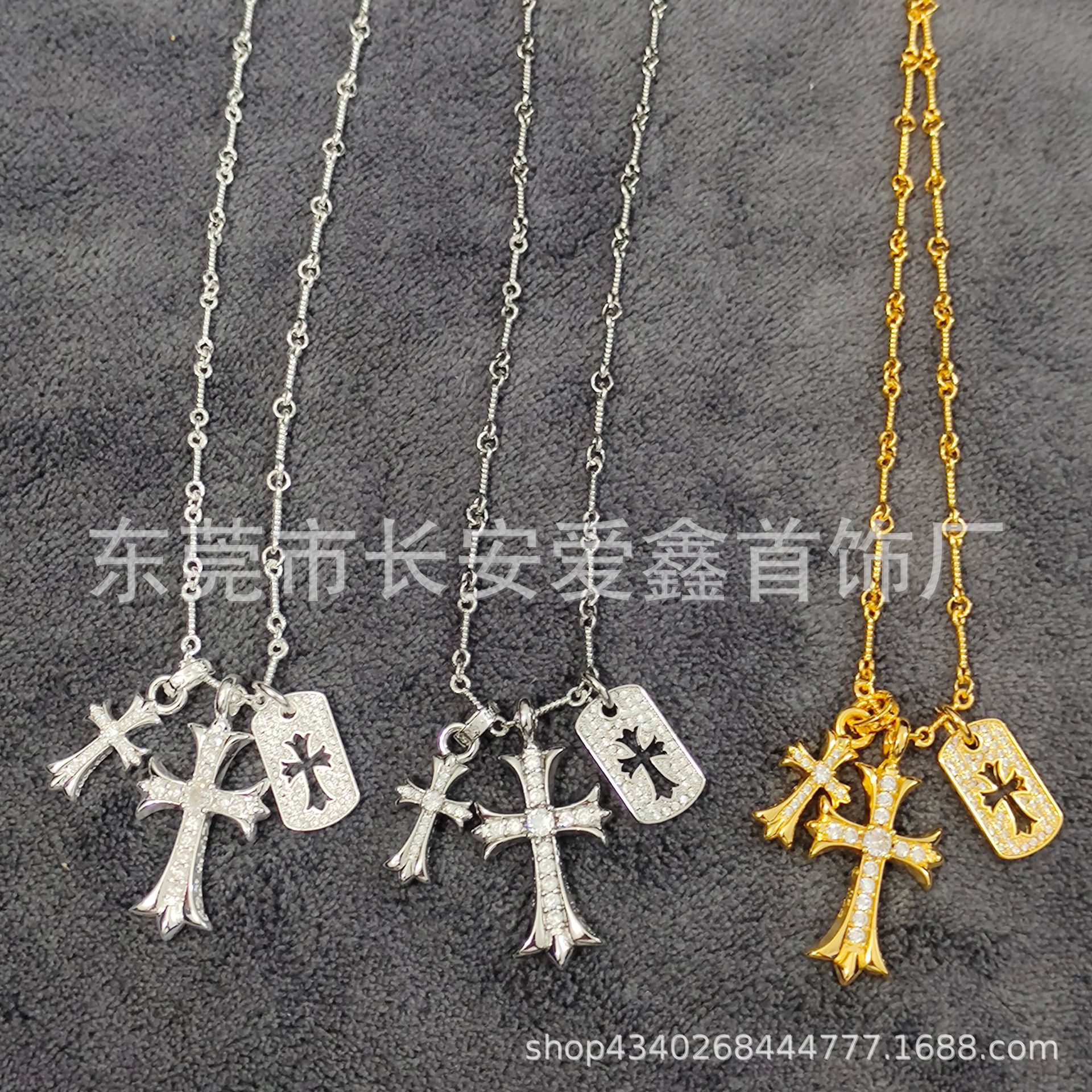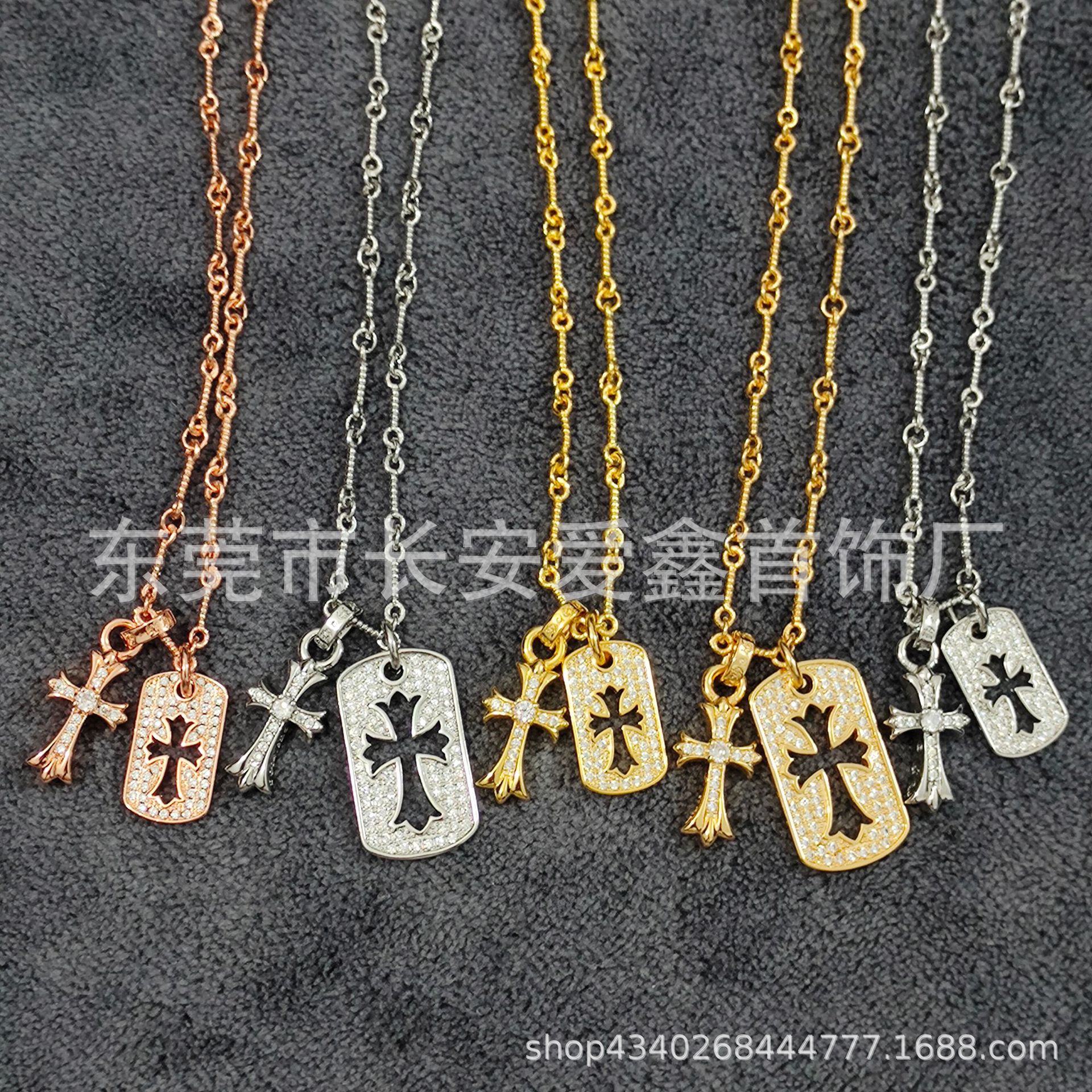 クロちゃんプラチナ満ドリルクロスネックレスペンダントカップル潮朋克ヒップホップチェーンアクセサリー小衆ギャル