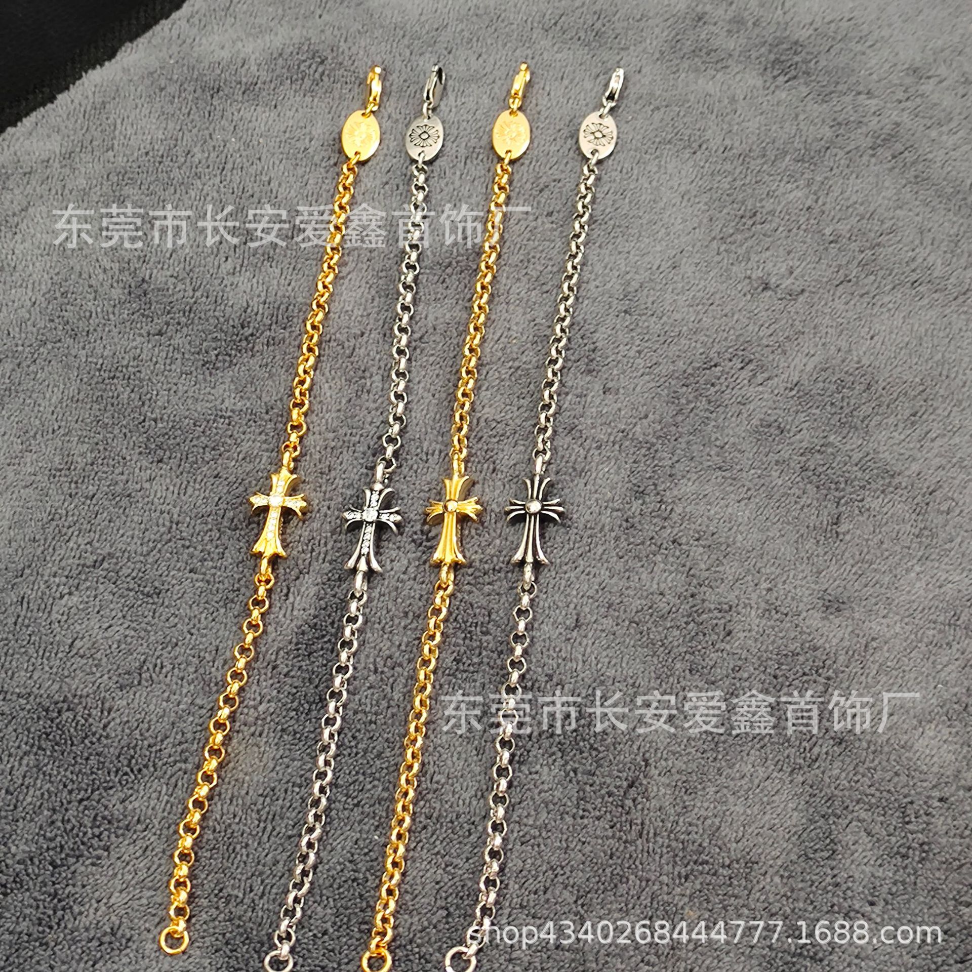 クロクロのレトロな十字の花はダイヤモンドの細いブレスレットを入れます。