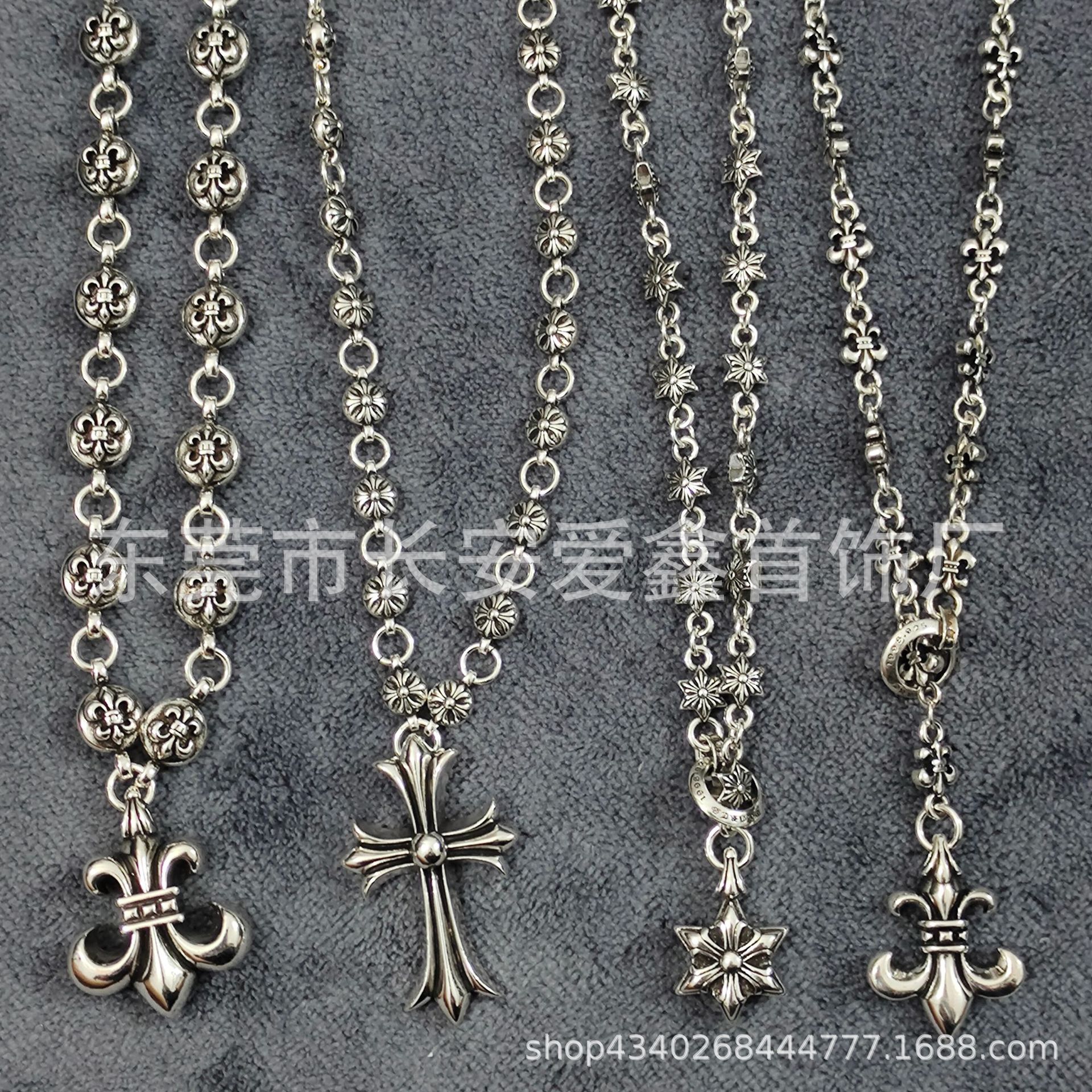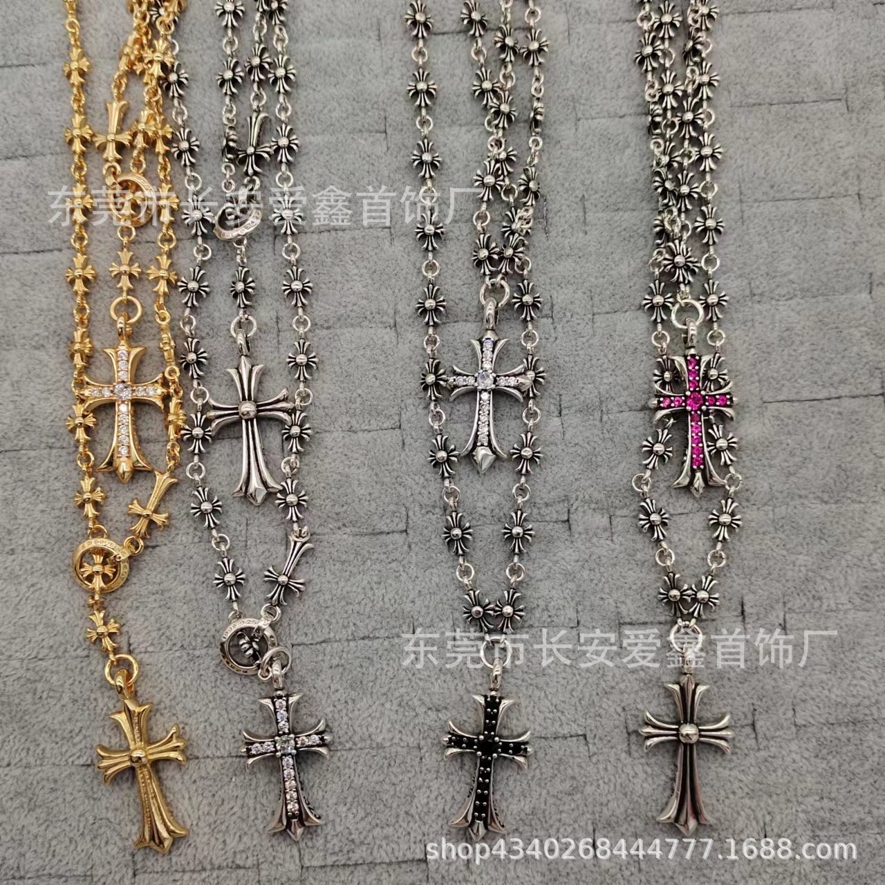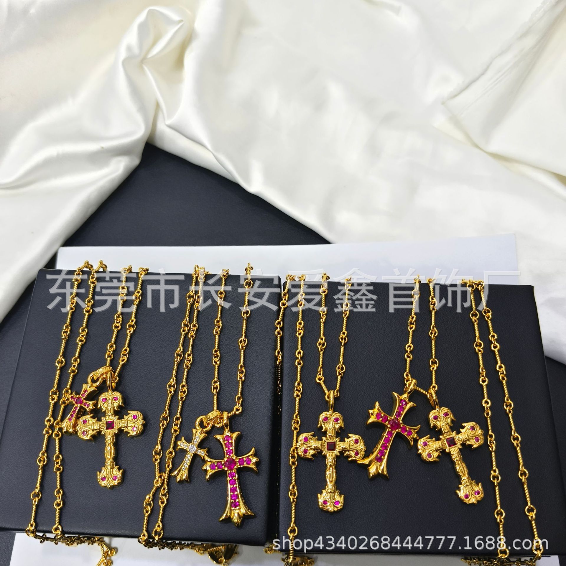 クロクロの新作の金色のダイヤモンドの十字架のネックレスの潮流の個性のファッションの男女の百合の甘いクールなギャルの装飾