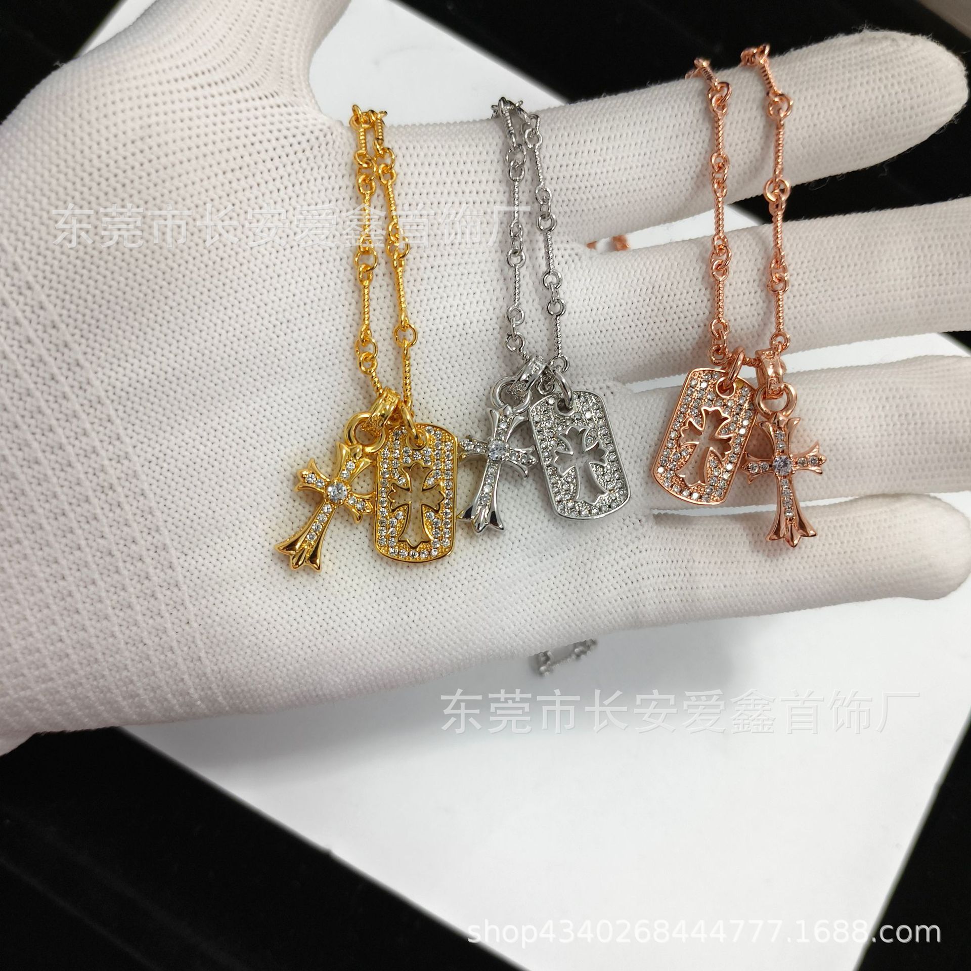 クロクロのプラチナ満ドリルのクロスのピンのチェーンは男女のシンプルな個性の粉のドリルの高級感の鎖骨のネックレスを合わせます。