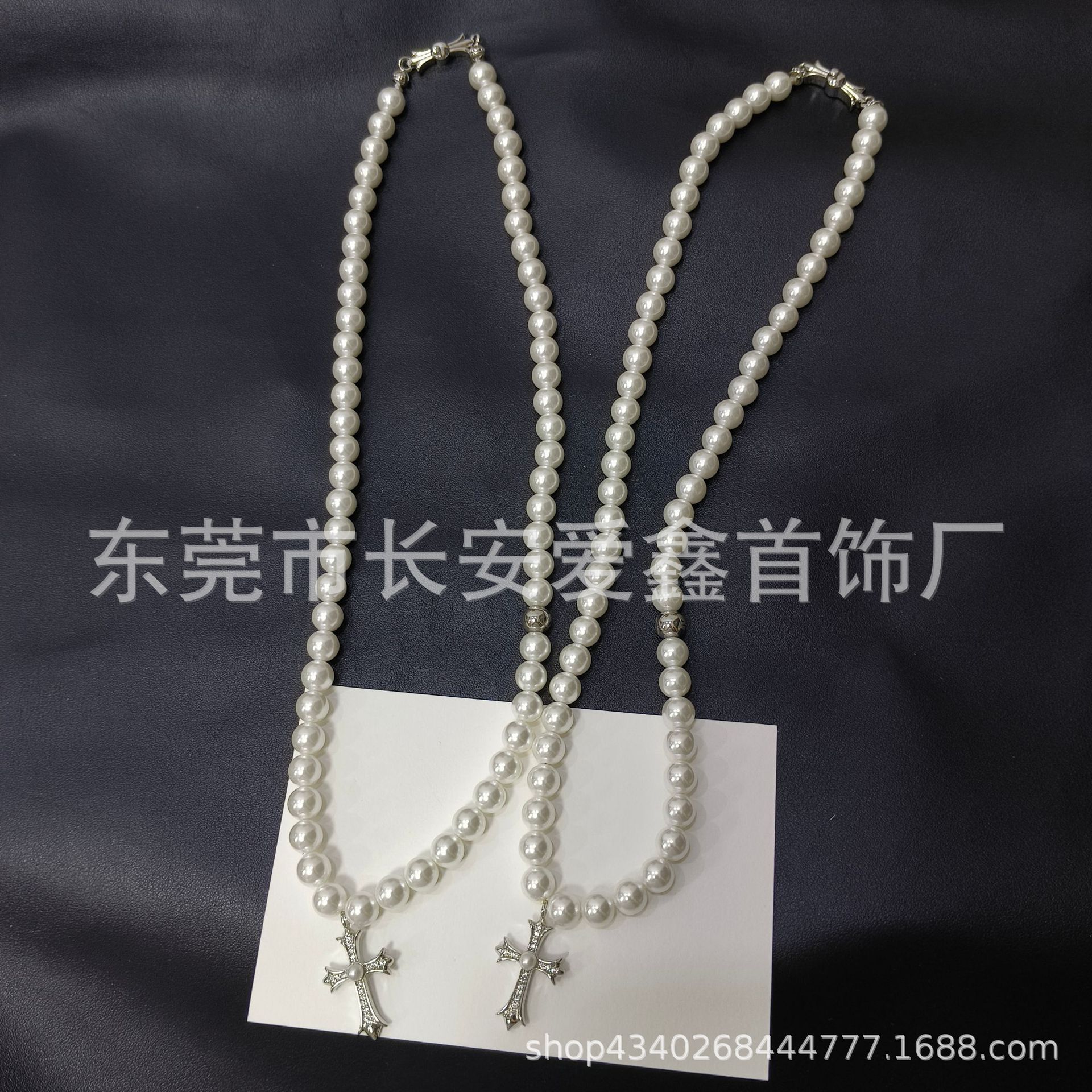 クロクロの新作のクロスネックレスのプラチナはダイヤモンドのアンカーのペンダントを入れて真珠の鎖の男女の同じ種類の竹節の鎖を配合します。