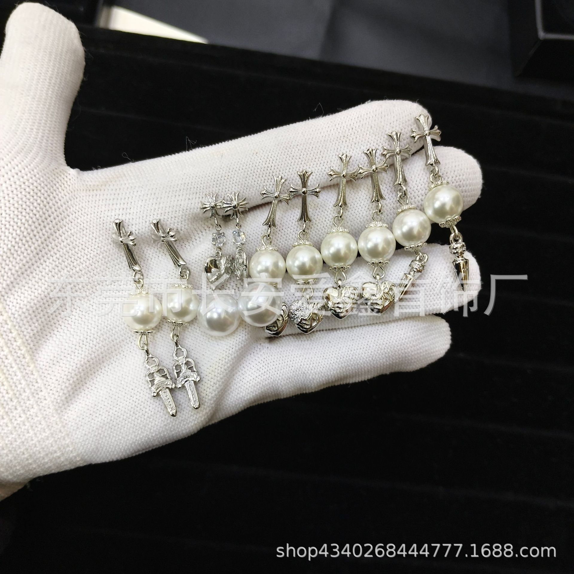 Crowe の新しい愛の淡水シェルビーズイヤリングクロス絶妙な質感のシルバー針イヤリング男性と女性のカップル用