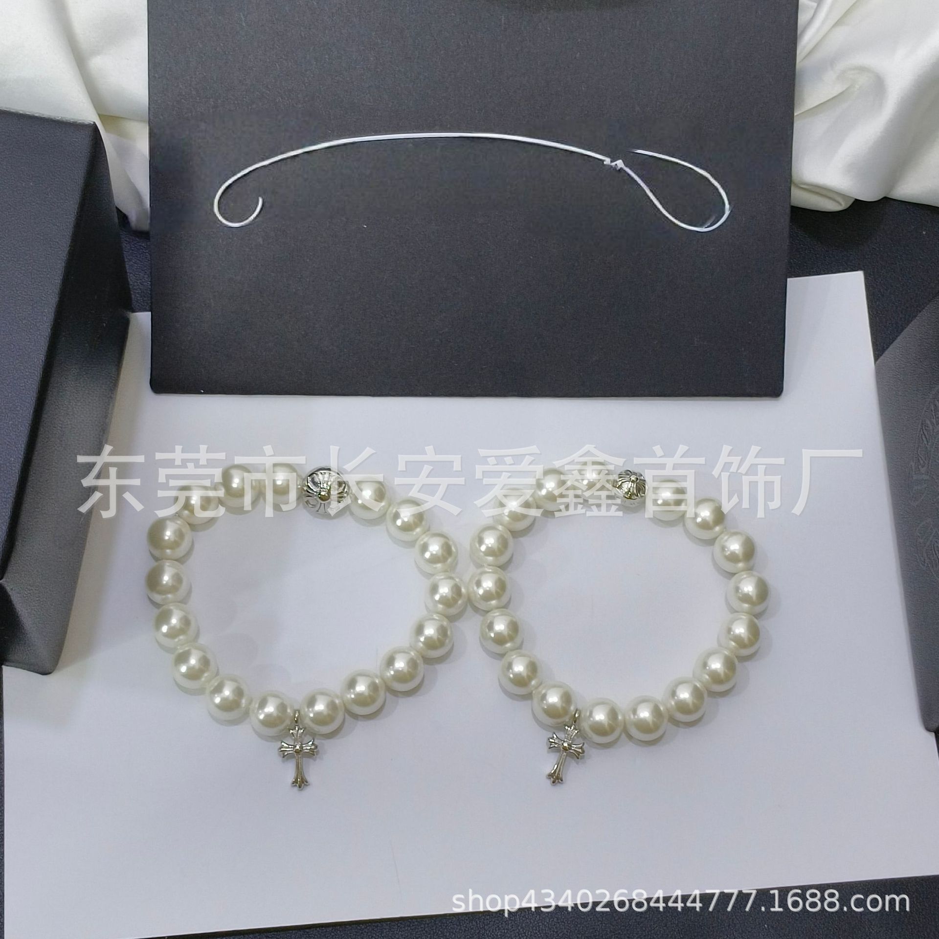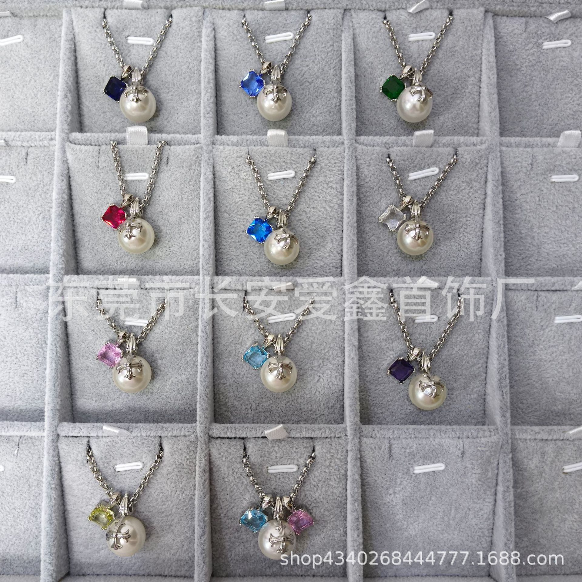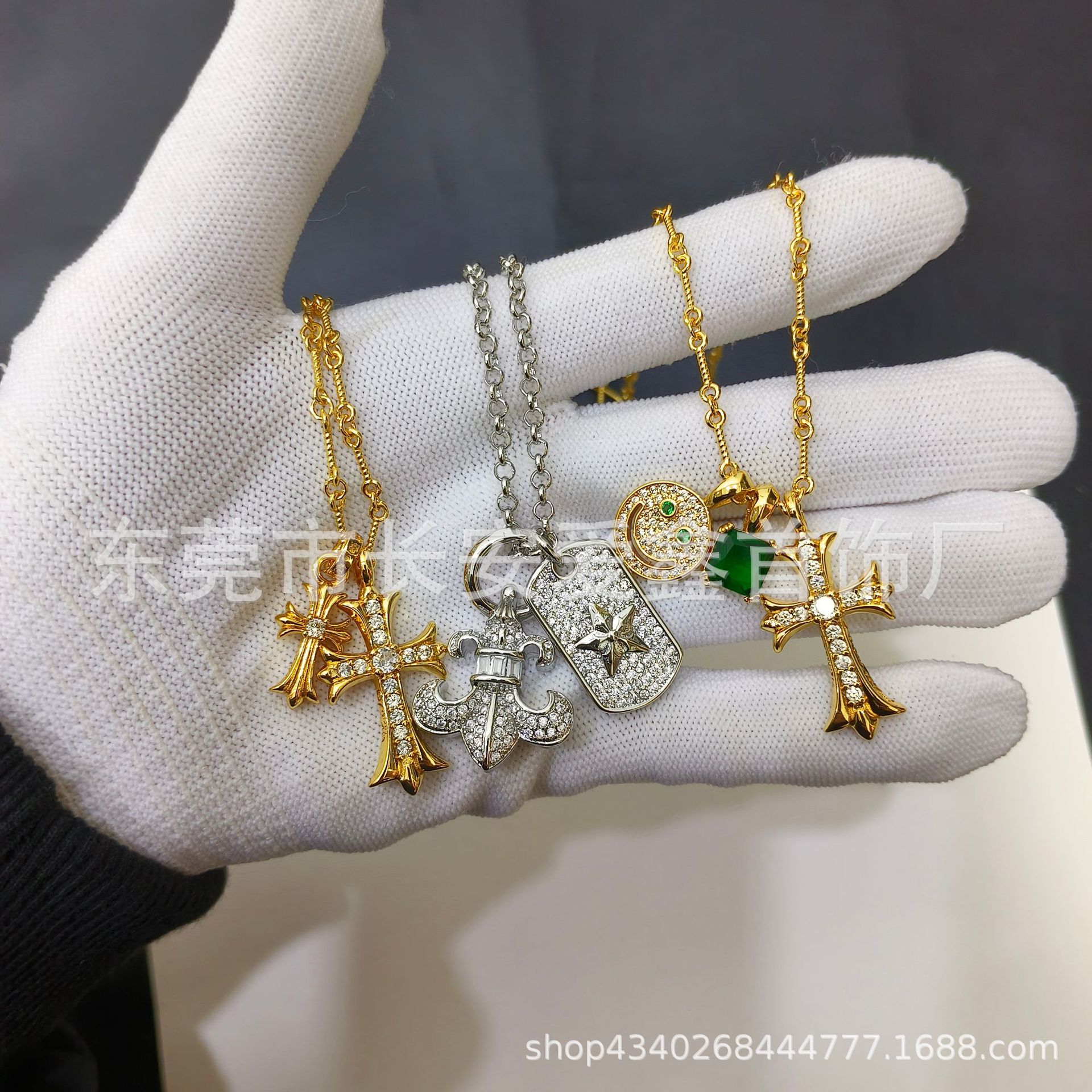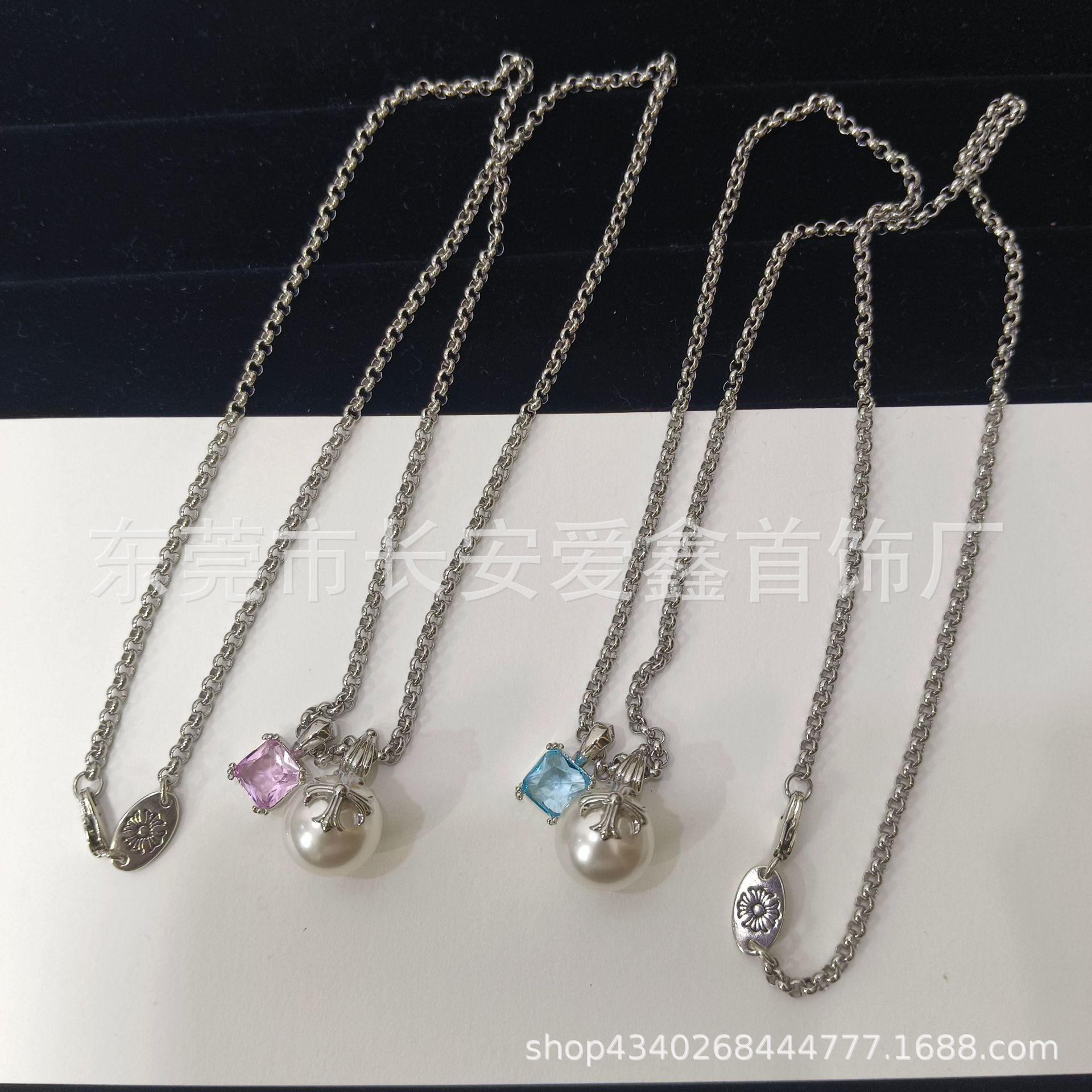 クロクロの新作のクロスネックレスのプラチナはダイヤモンドのアンカーのペンダントを入れて真珠の鎖の男女の同じ種類の竹節の鎖を配合します。
