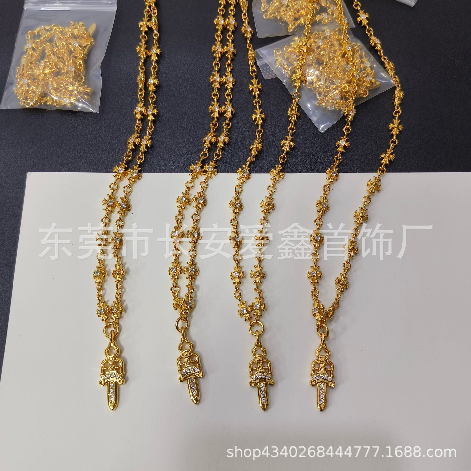 クロクロレトロ古いサイズの宝剣のペンダントのアルファベットの十字の花のボールの潮流のファッションの個性の男女のチェーン