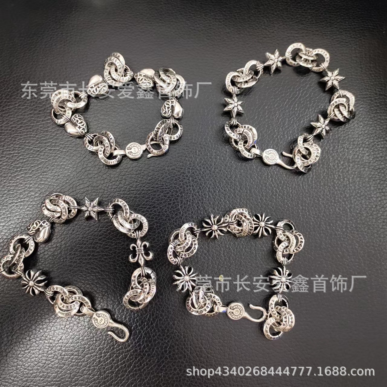 クロエ泰銀復古は古い船の錨の十字の黒檀の石の手の串の夏に男女のカップルのチェーンのブレスレットを合わせます。