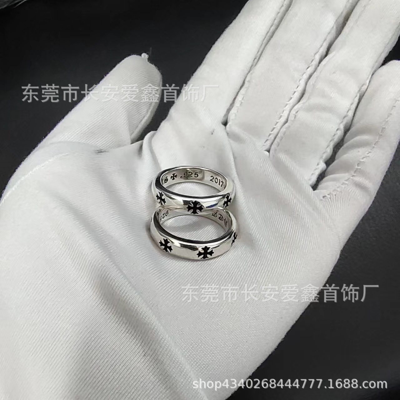 クロクロ永远の心リングトレンドファッションパンクシンプル文字クロスレトロ男女カップルペアリング