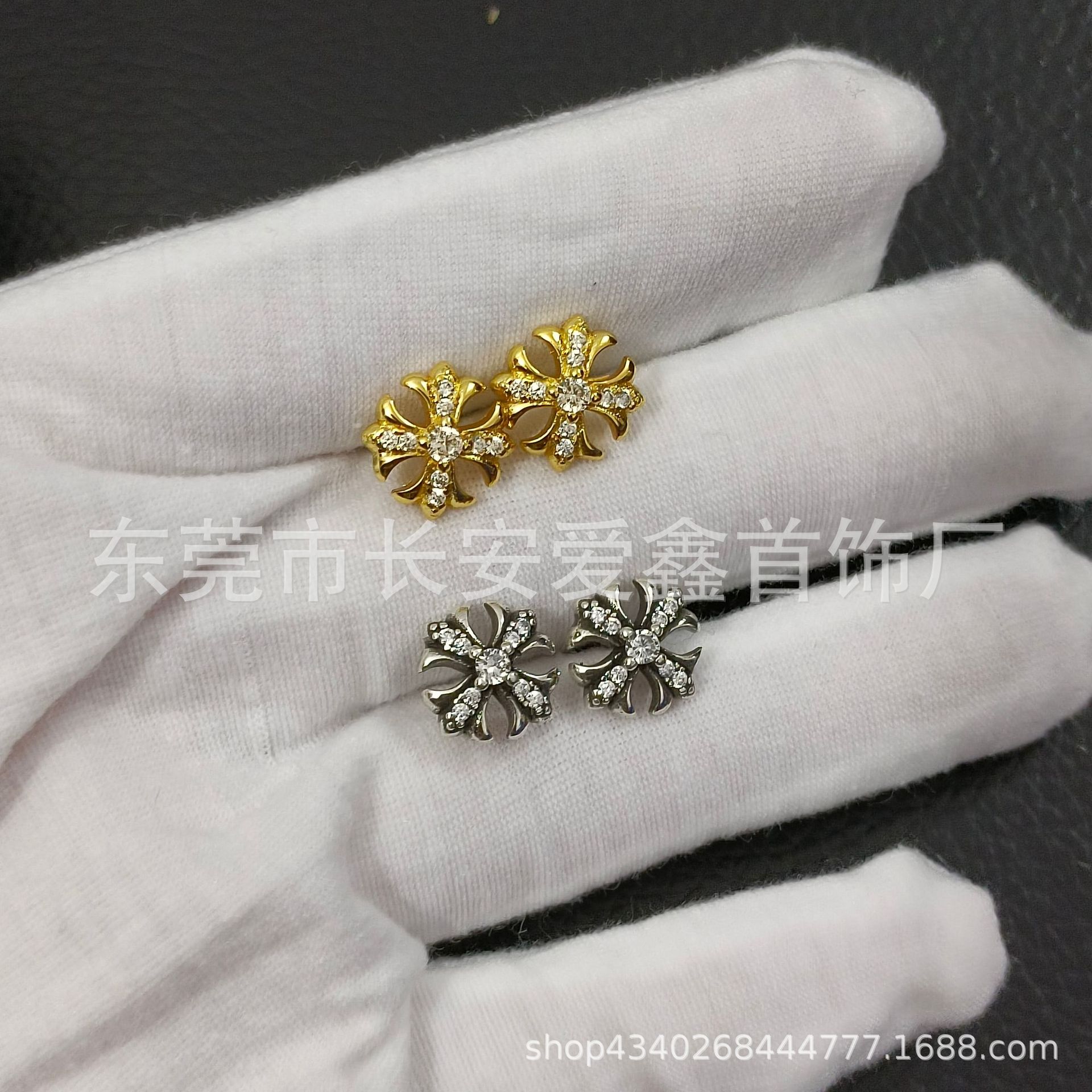 クロエの金色のレトロなクロスの白いドリルのピアスの甘いクールな小さいカップルの男女のイヤリングの個性のヒップホップイヤリング