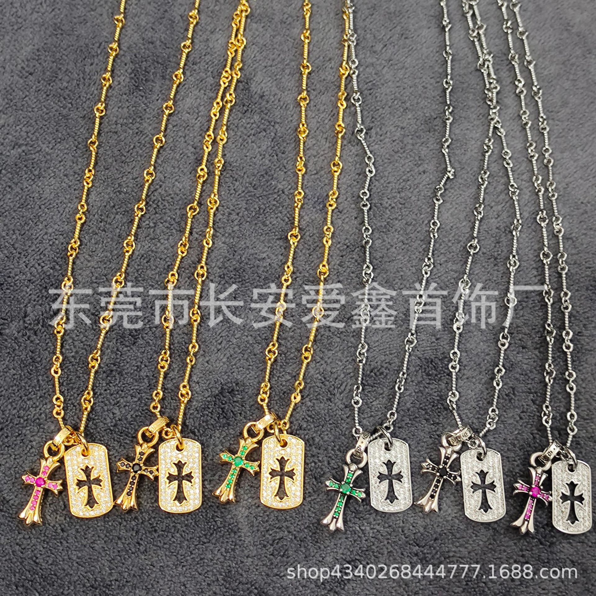 クロクロの色のドリルの小さい十字の金色の四角の札のいっぱいのドリルの復古のネックレスのカップルの同項の竹節のチェーンの個性は簡単です。