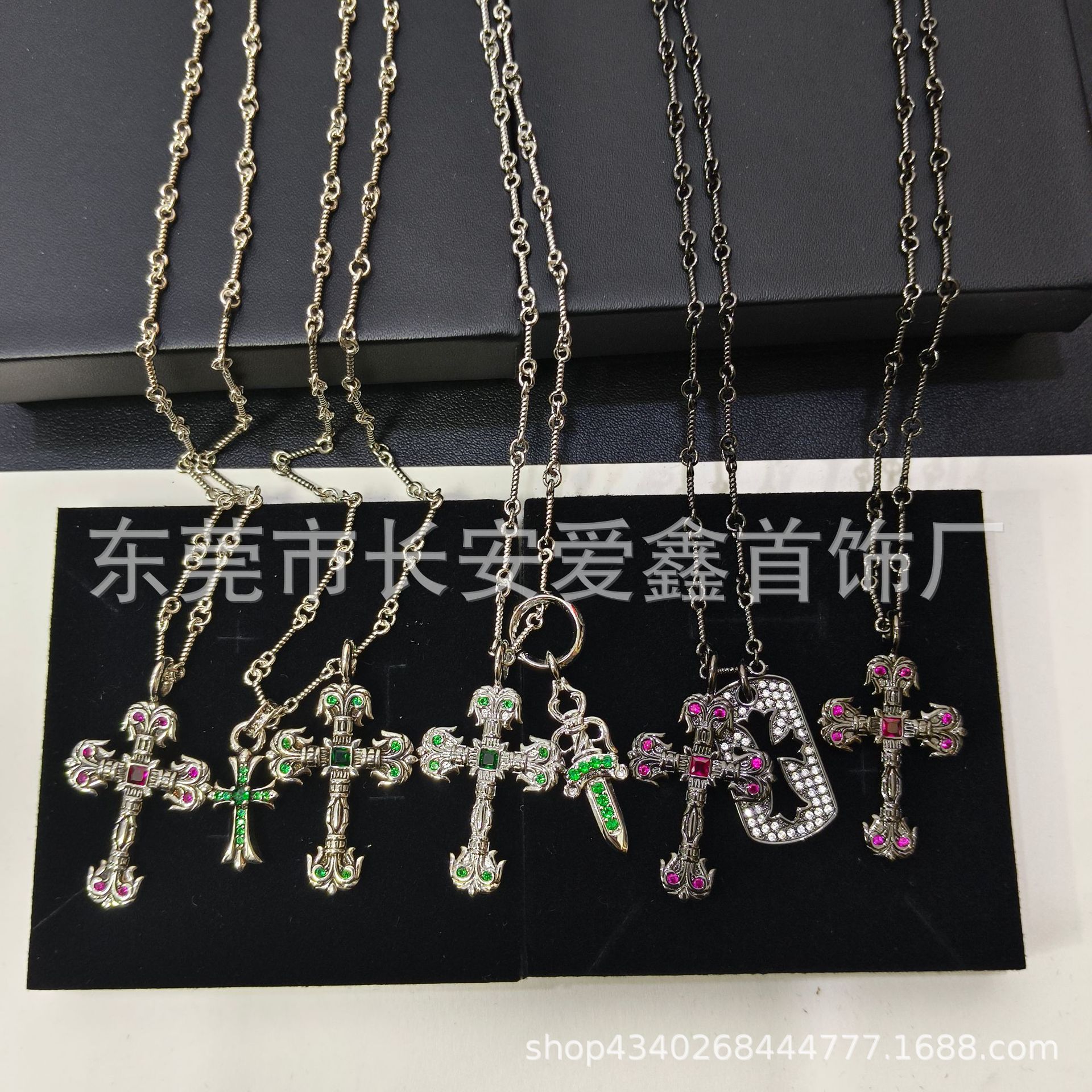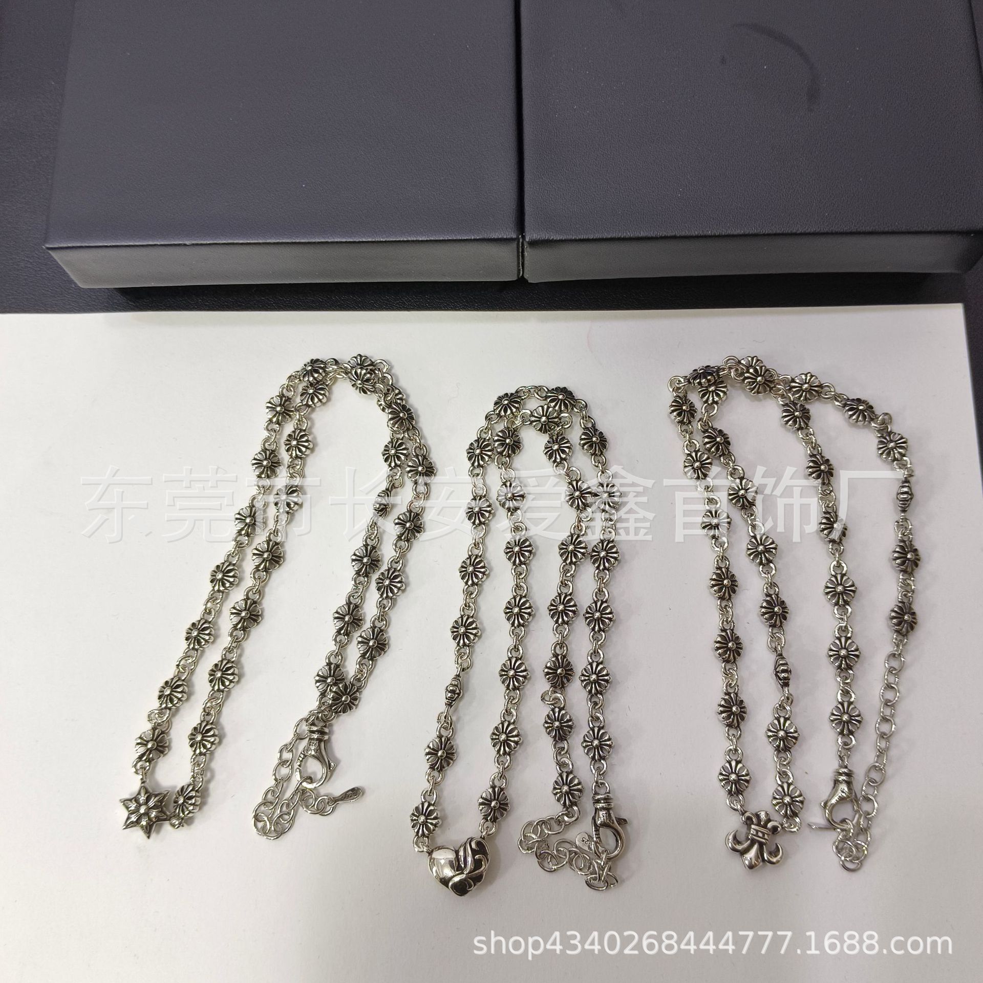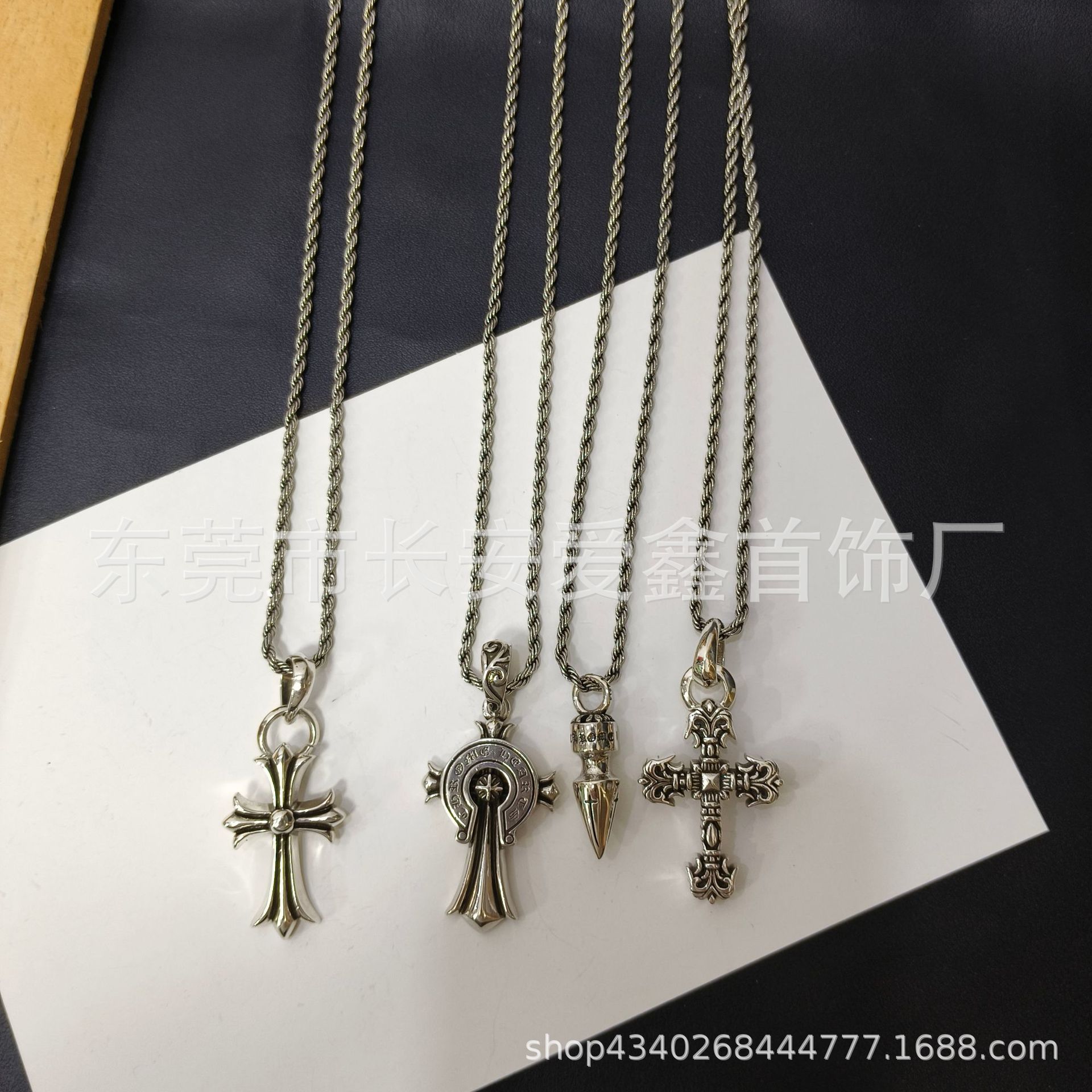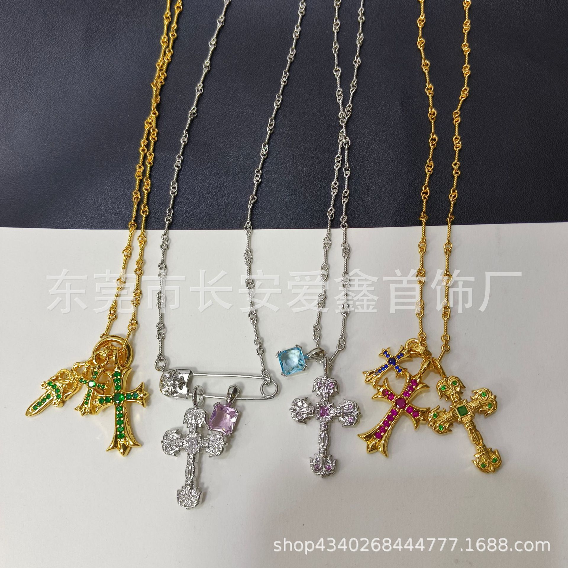 クロクロレトロ十字五角星ネックレスファッションヒップホップ愛男女百合鎖骨鎖カップルアクセサリー