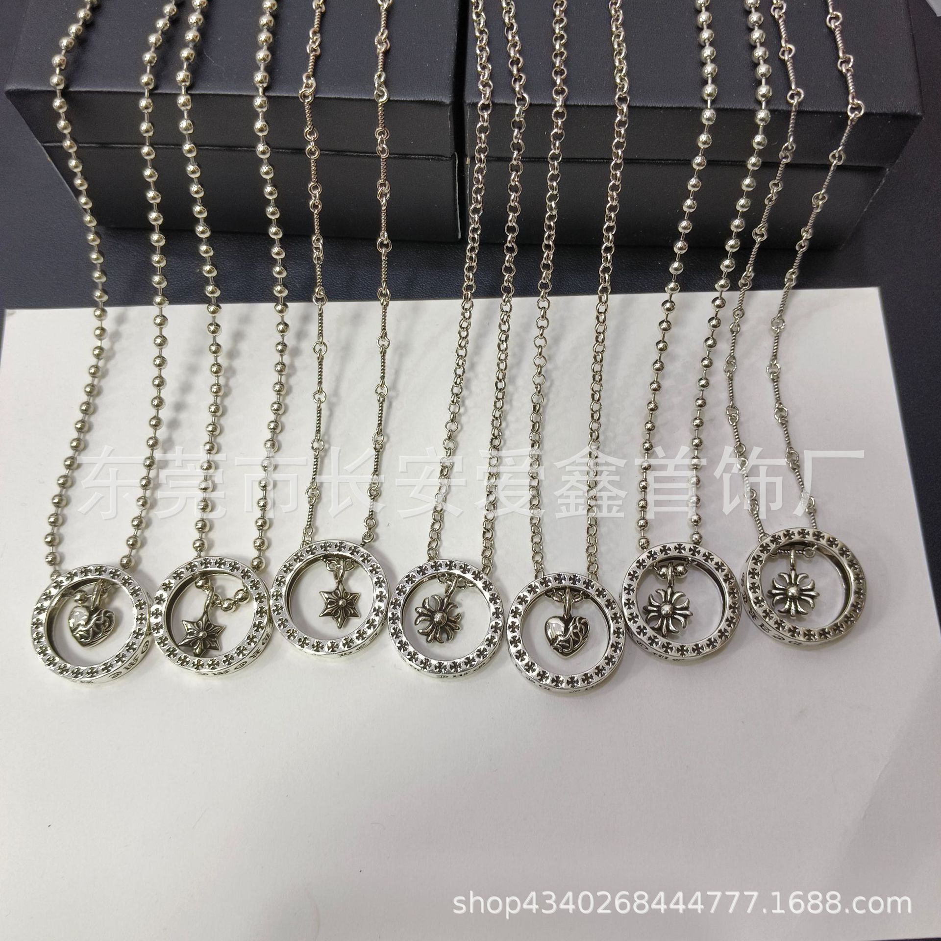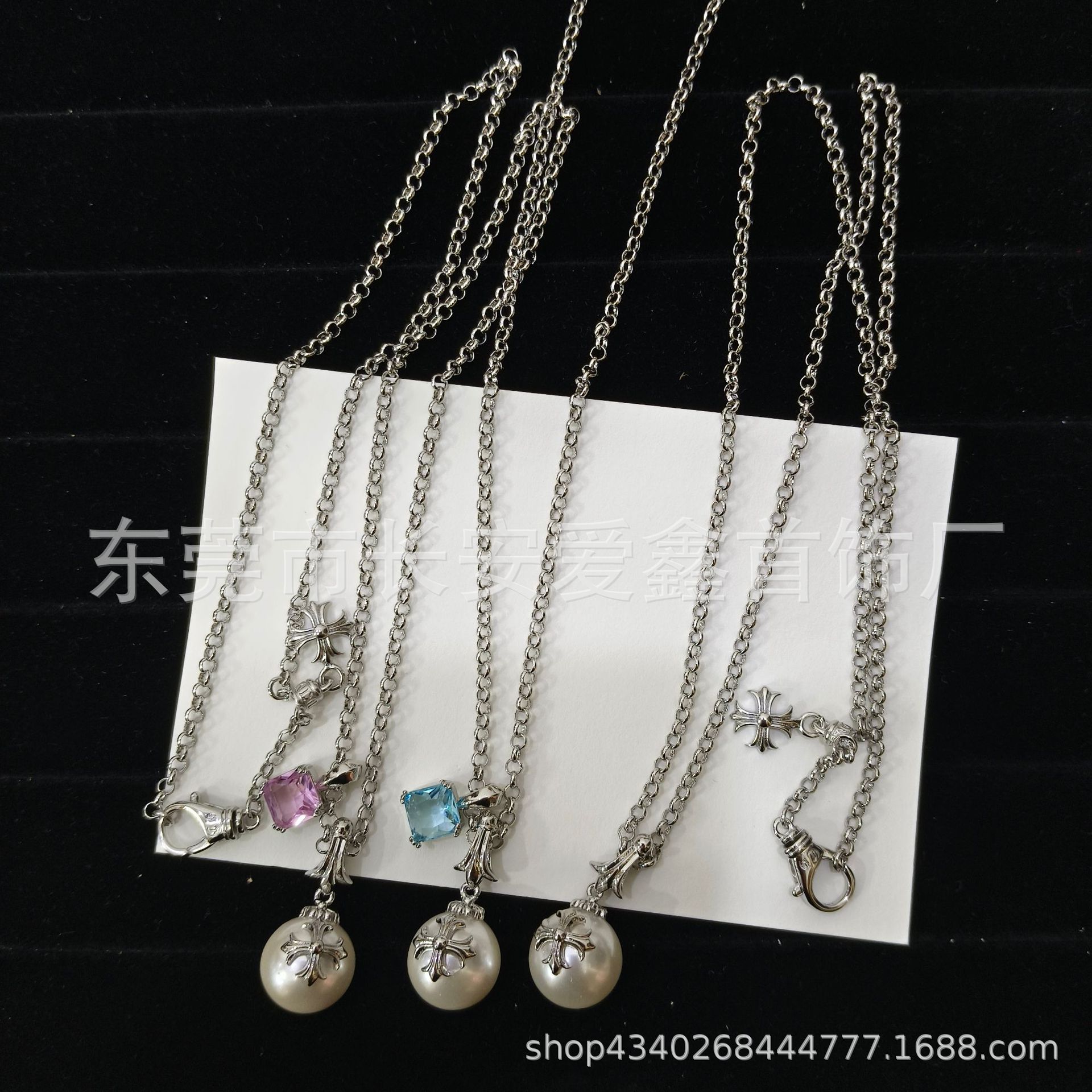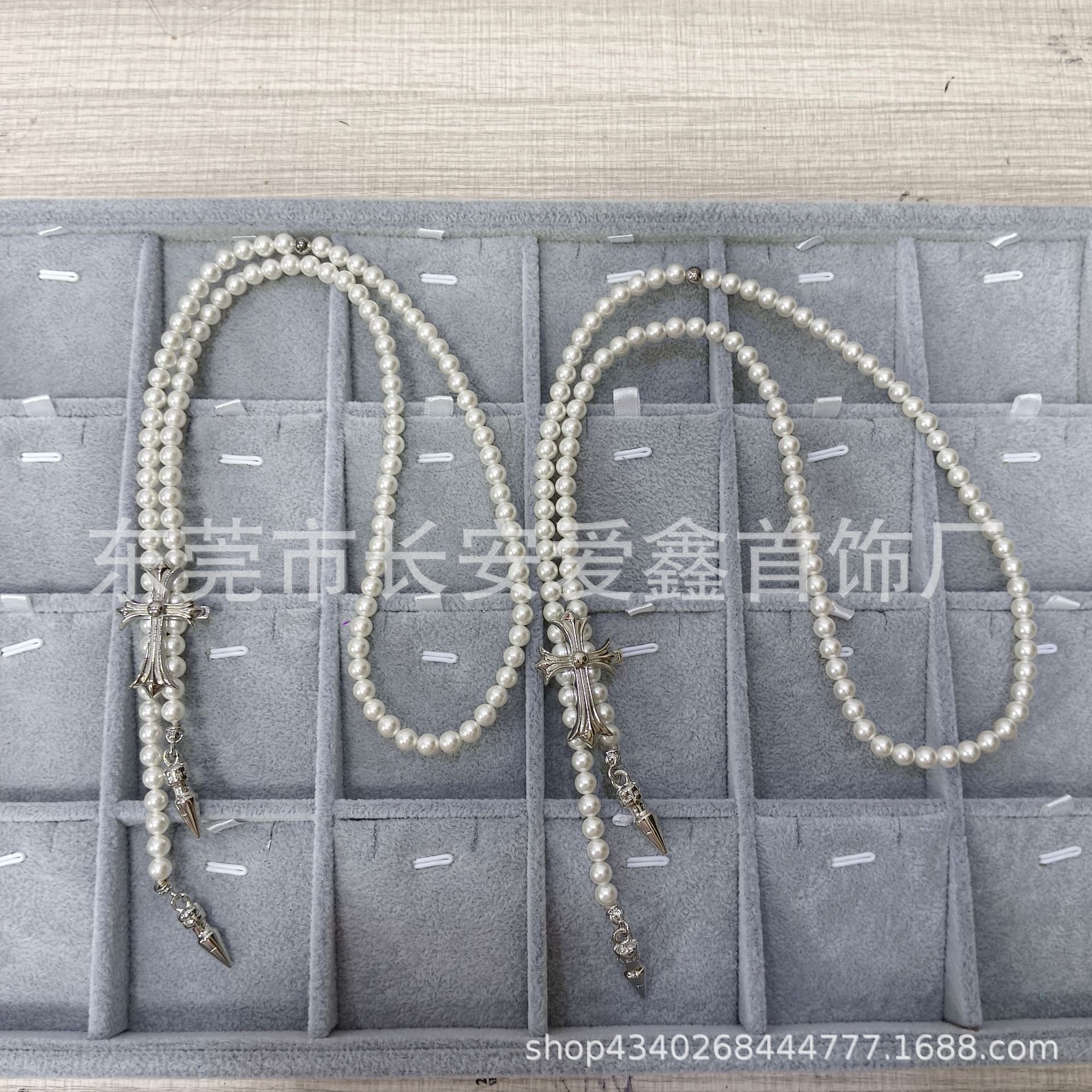 クロクロレトロ十字円環愛ペンダントネックレス百合細真珠チェーン欧米ヒップホップ男女パンク風