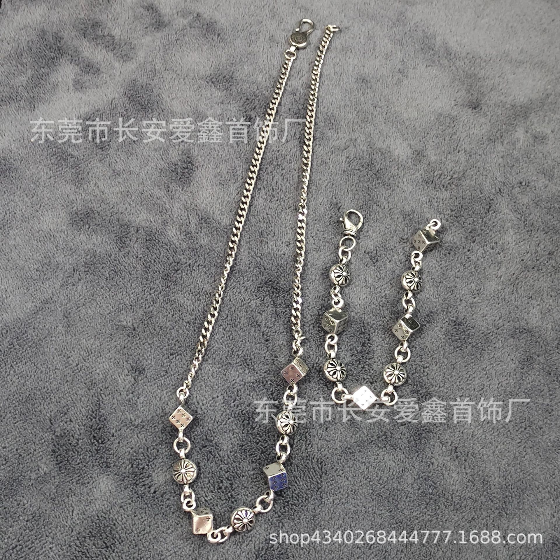 クロクロの新作レトロな十字の花のサイコロのブレスレットの幾何学の四角のネックレスのカップルはファッションの男女を合わせます。