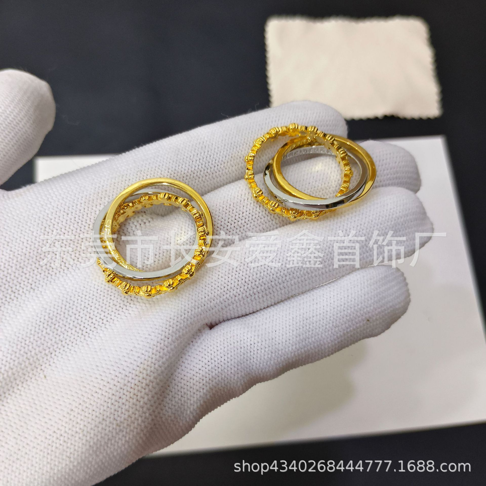 クロエの金色の十字の三環の指輪の男女の個性のヒップホップの百合の高級感のファッションの指輪の装飾のカップルの金