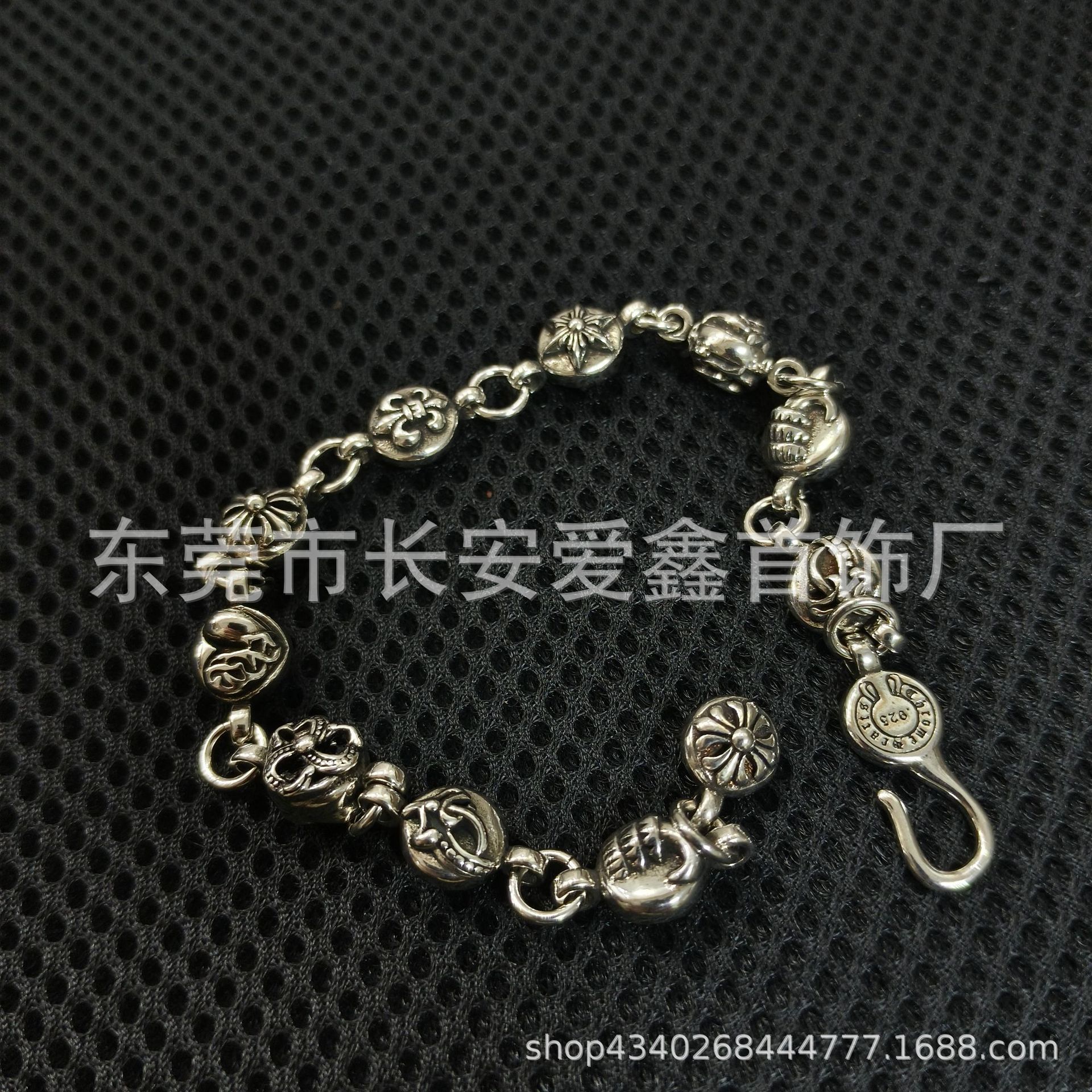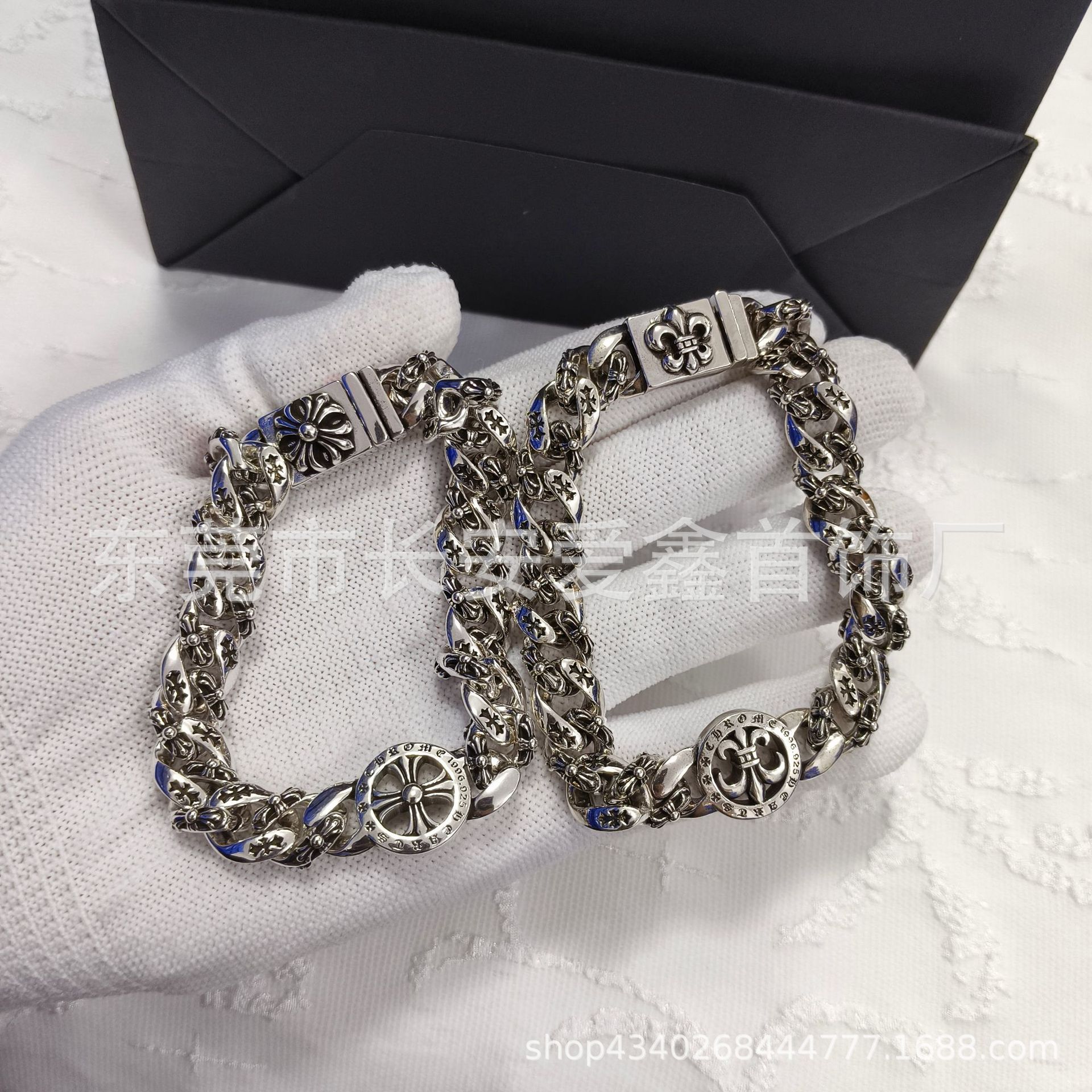 クロウ925ゴールドクロスフラワーダイヤモンドブレスレット、威圧的なメンズトレンド、個性的なヒップホップ、男女兼用アクセサリー