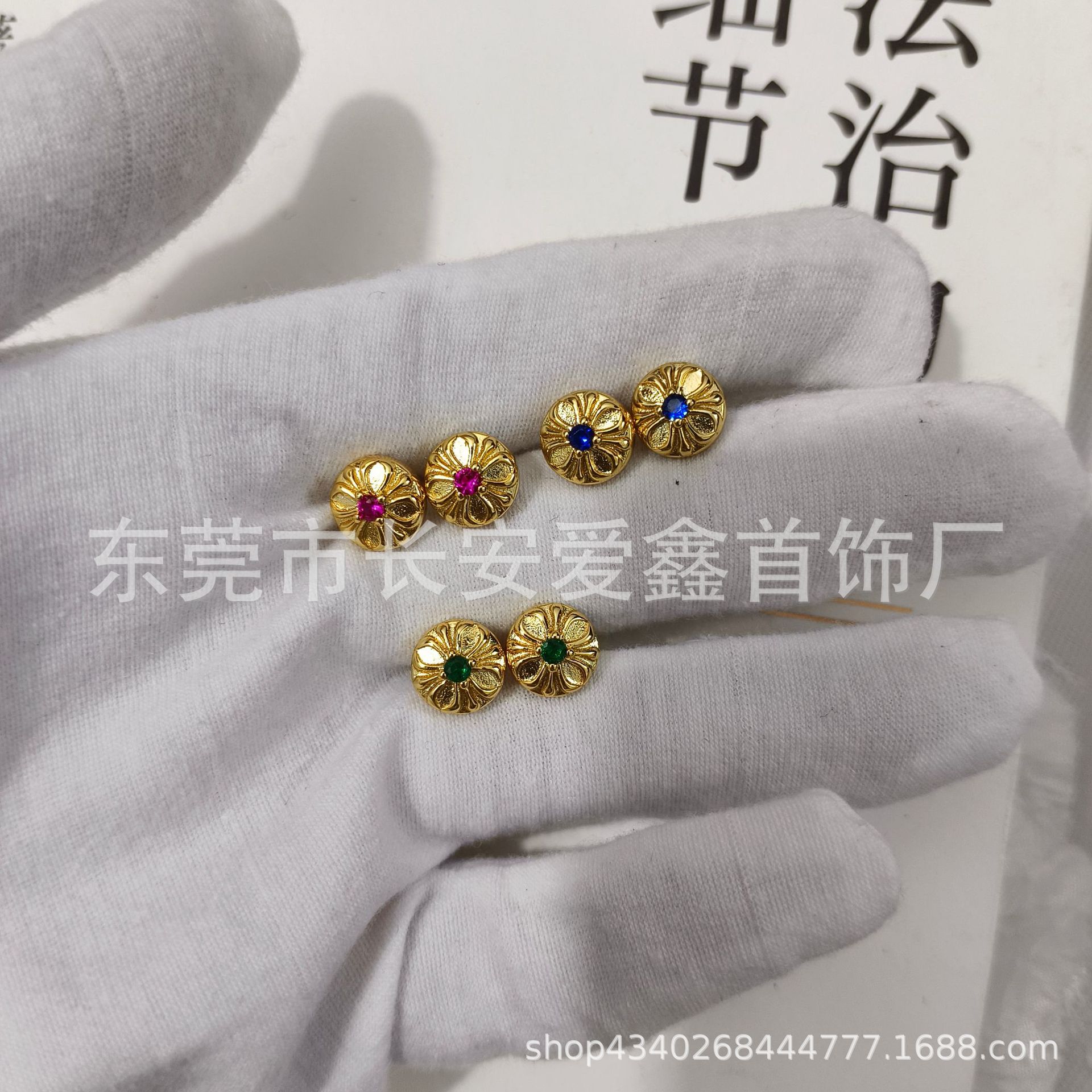 クロクロの金色のダイヤモンドの丸いクロスの銀の針のピアスはシンプルで冷たい風の高級感があります。