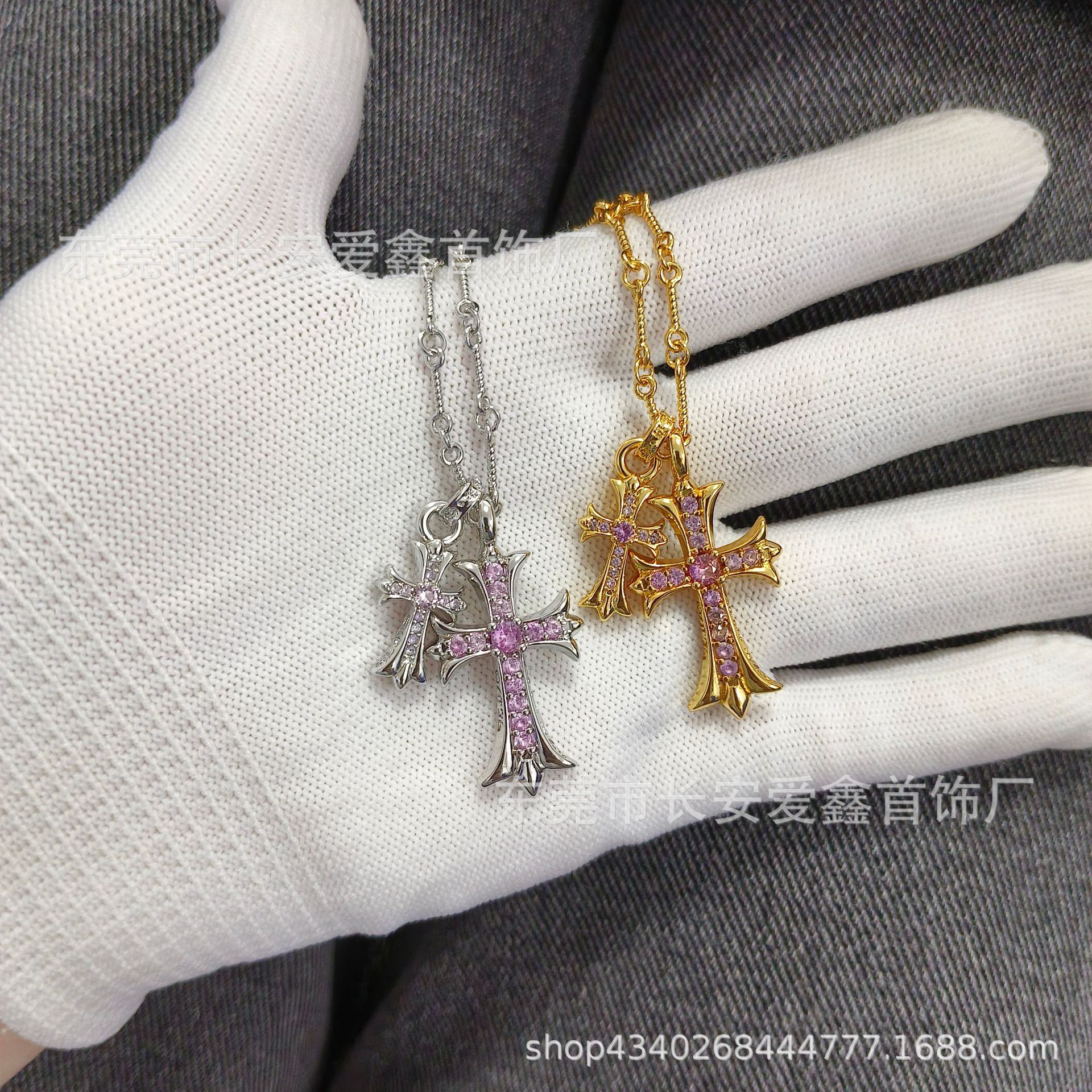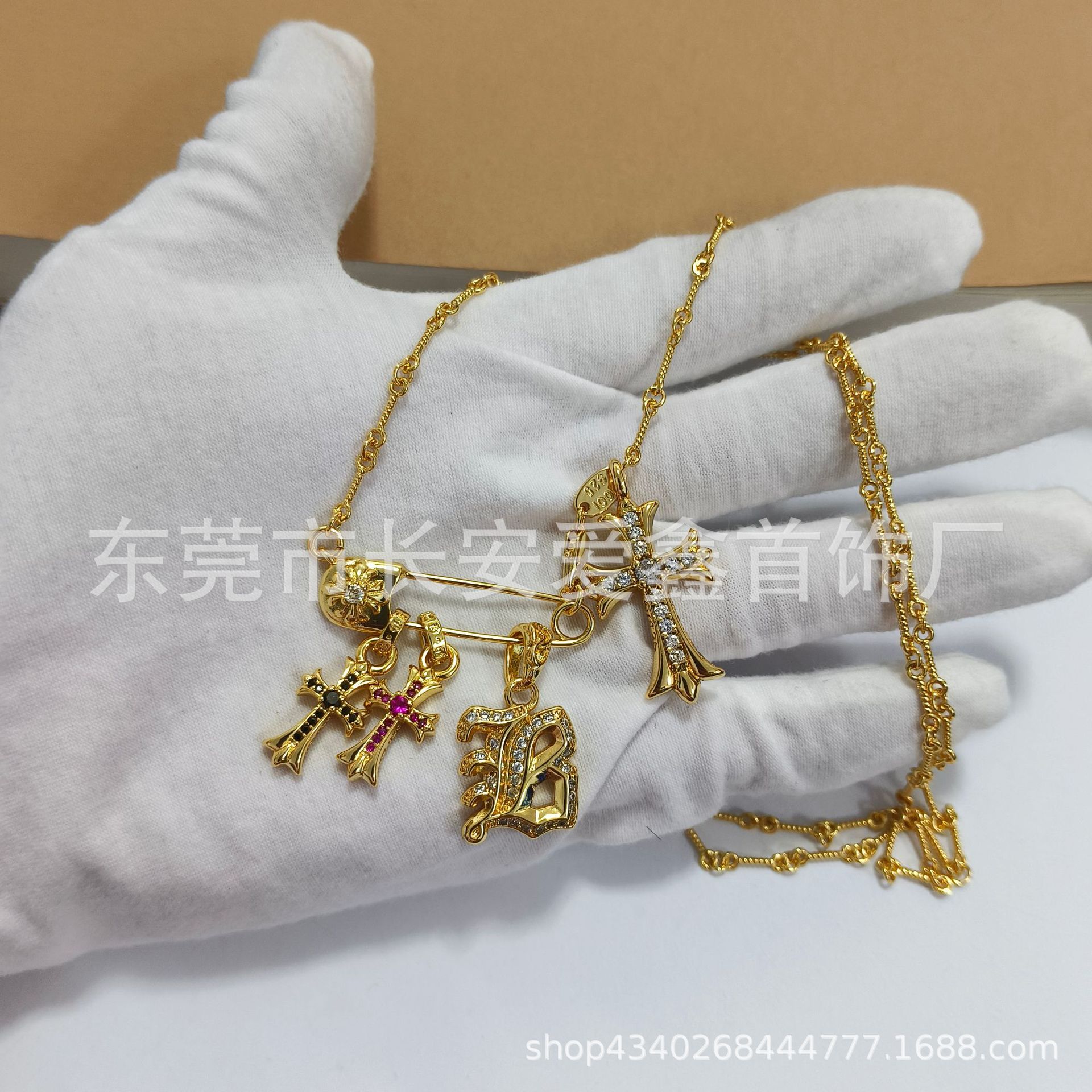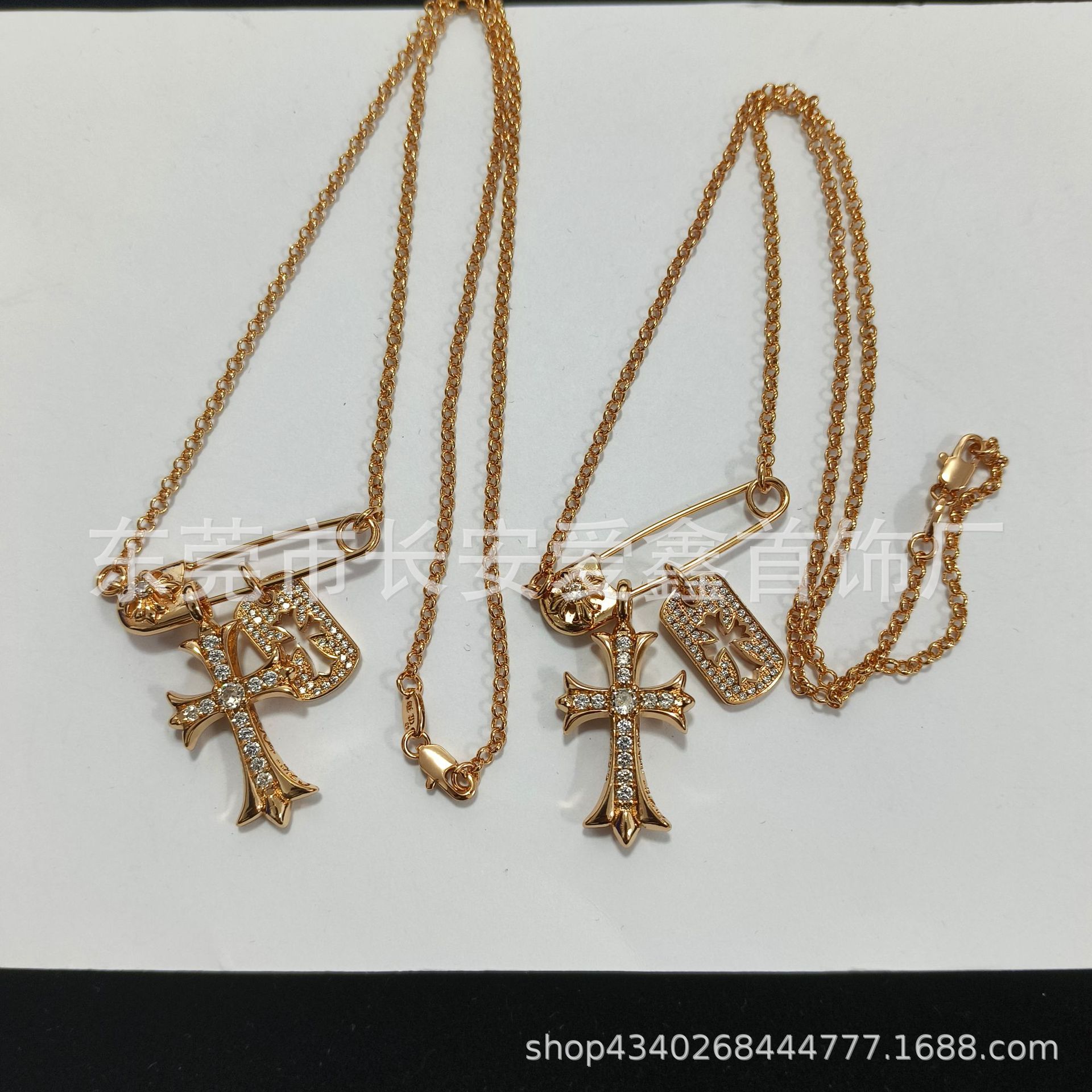 クロクロピン満ドリルシャンパンゴールドクロスネックレスヒップホップ個性パンク男女クリップ鎖骨首チェーン