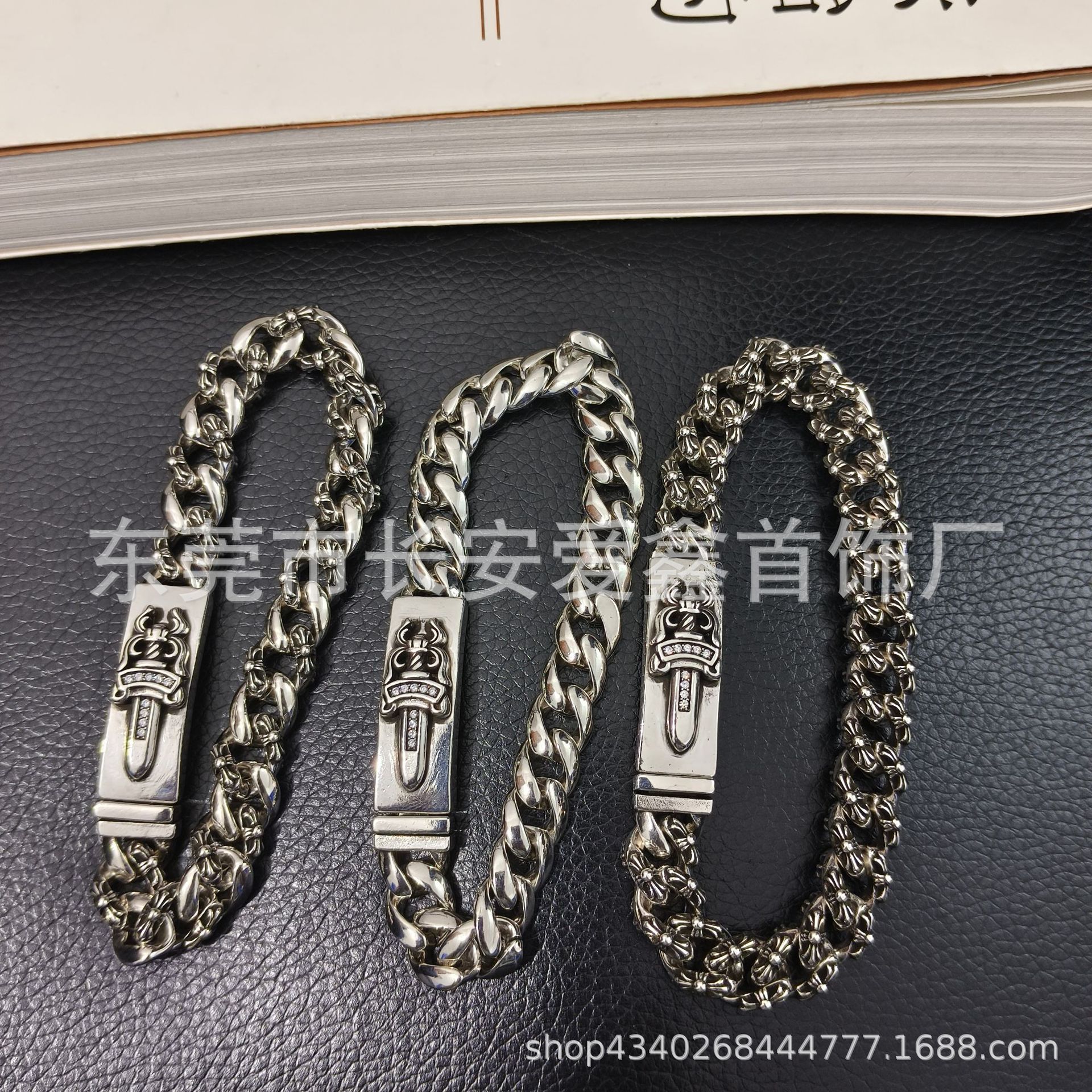 クロクロのレトロな細い金の十字の花の宝剣の炎のブレスレットの覇気のファッションの潮の男女のロブスターボタンの百合の手の装飾