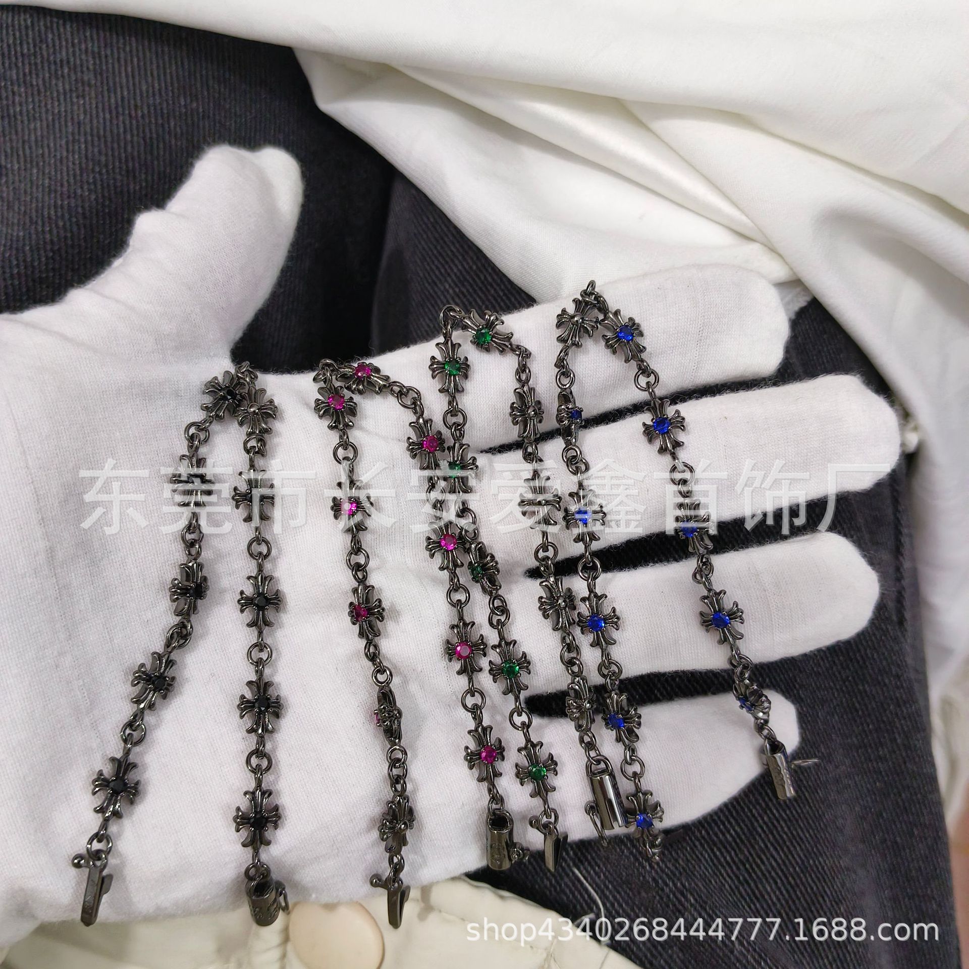 クロクロの黒い十字の花はダイヤモンドの細いブレスレットを入れます。