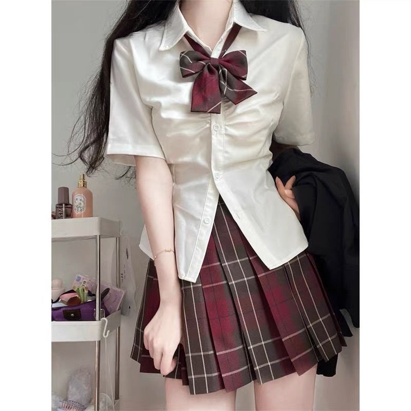 Jkユニフォームウエスト半袖シャツレディース夏日系学院風ホワイトシャツ犬ショートスカートスカートセット