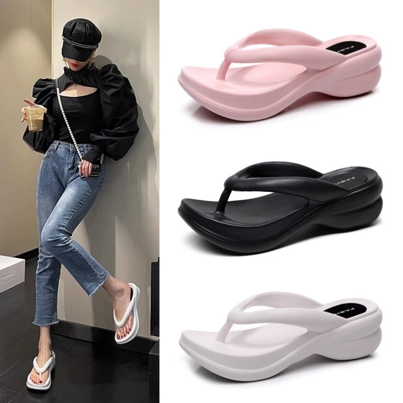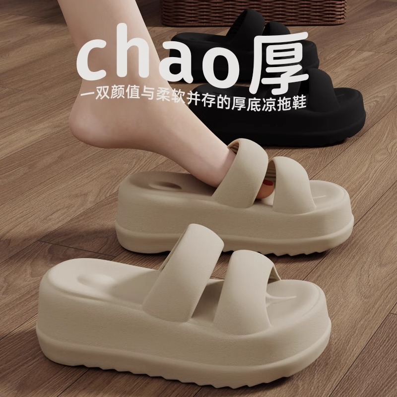 ファッショナブルな女性用夏アウターウェアインターネットセレブビーチ厚底2025新しいEVAソフトつま先スリッパ
