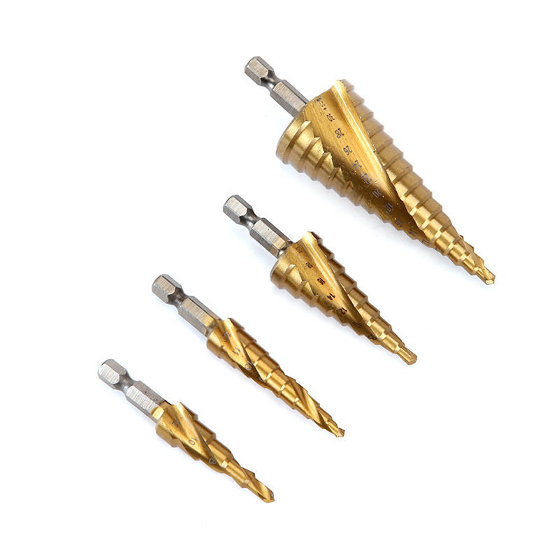 宝塔ドリル3点セット六角柄螺旋溝公製チタンメッキ穴拡穴器ステップドリルセット階段ドリル