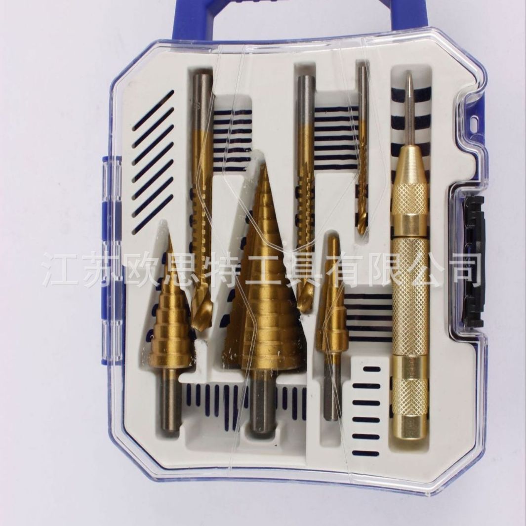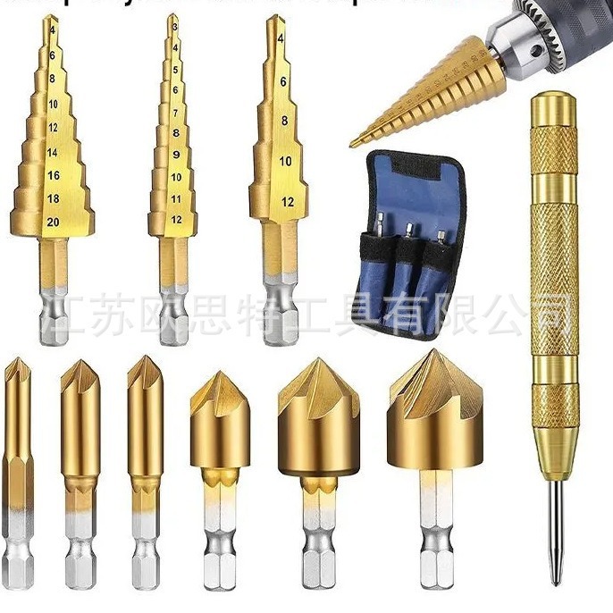 クロスボーダー10pc六角宝塔ドリルチタンメッキ直溝階段ドリル面取り器穴開け多機能セット