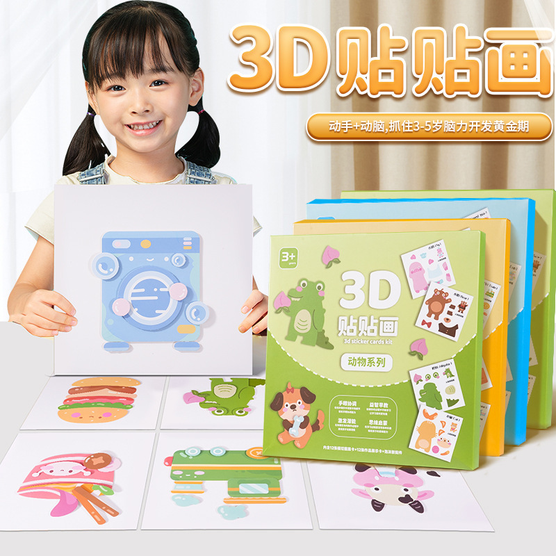 3d立体貼り絵子供漫画貼り本幼稚園益智手作りdiy貼り絵卸売り
