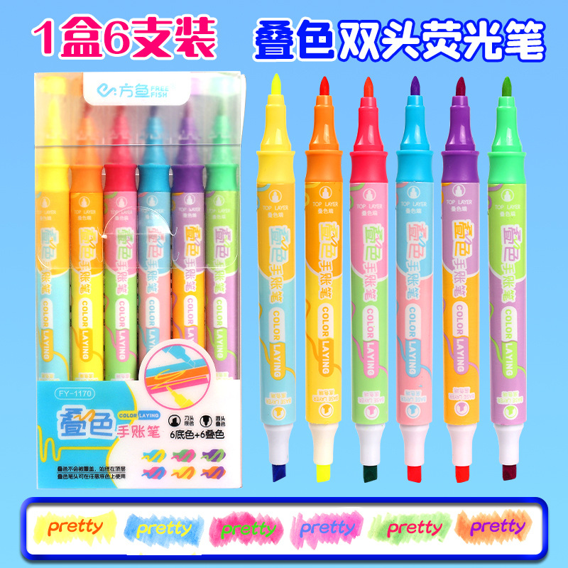 双頭の色を重ねて6つの双頭の蛍光ペンを入れます。