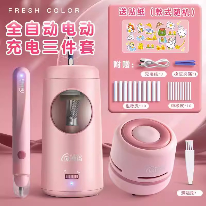 欧博尚全自動電動鉛筆削り学生掃除機電気消しゴムusb充電文房具卸売り