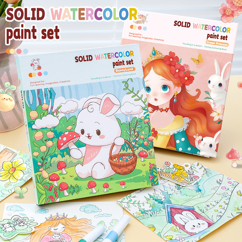 外国貿易水彩ぬりえボックス純粋な英語内蔵顔料漫画落書きパズル開発ぬりえブック在庫卸売