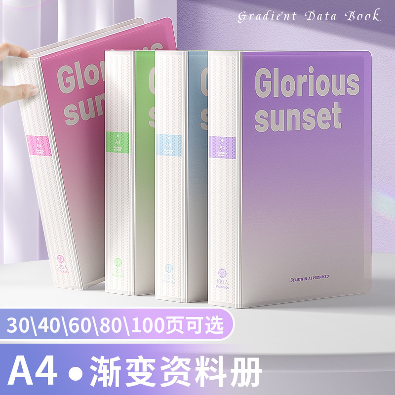A4グラデーション色資料冊モランディ防水厚手大容量試験紙クリップファイル収納収集袋