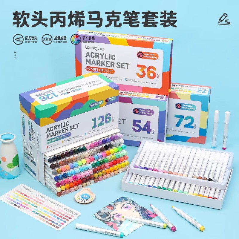ブルーフルーツソフトヘッドアクリルマークペンセット126色水性ウォブル品质カラー水ペンアート大容量