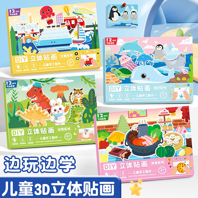 子供の立体 3D ステッカー啓蒙早期教育実践教材絵画開発パズルステッカー在庫卸売