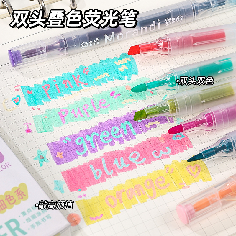青い果実の双頭の重ね合わせた蛍光ペンの重点標識のマカロンクリームの色は重点の蛍光のマーカーのペンをつけます。