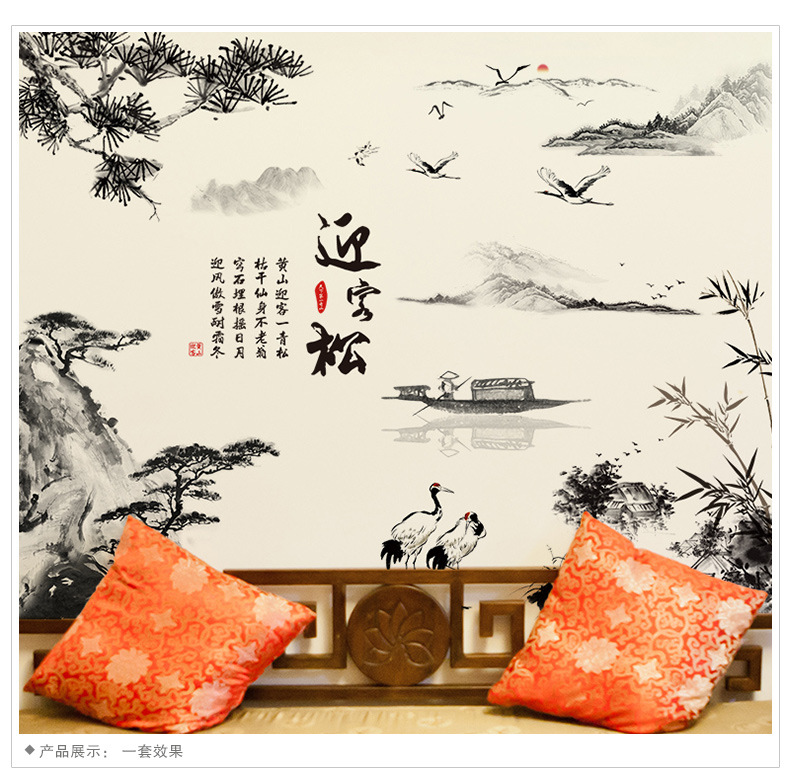 Xh9262中国風自己粘着壁紙山水迎客松テレビ背景壁9252花開富貴装飾壁貼り