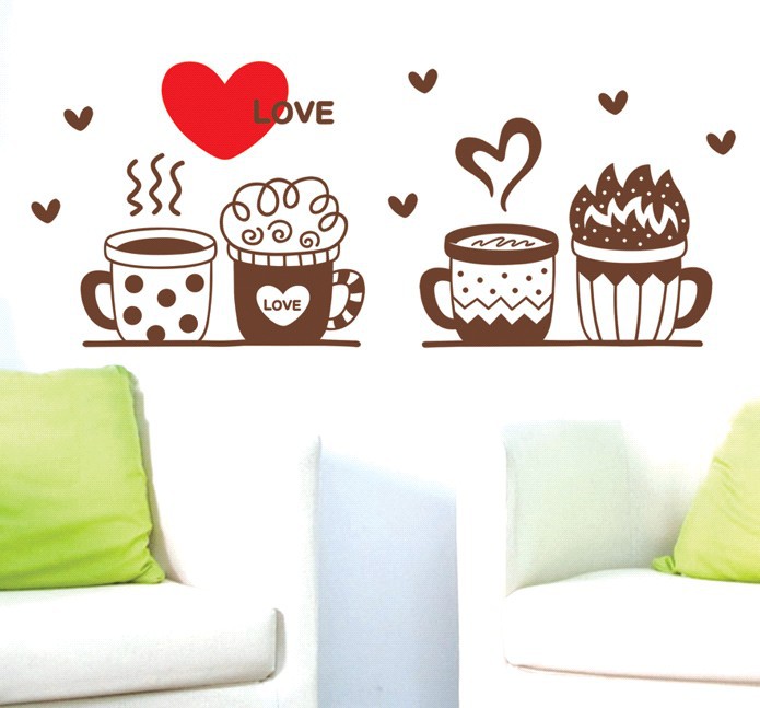 旅康DM4560-008コーヒー愛ミルクカップコーヒーショップティーバーガラス装飾自己接着壁貼り絵