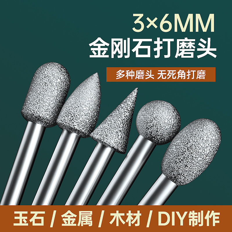 金刚砂研削ヘッド玉石研磨ツール翡翠金属3mm小型電動ダイヤモンド研削ヘッド