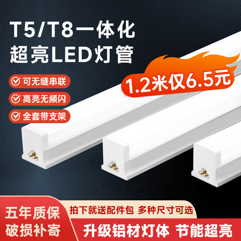 一体型ledランプT5超亮蛍光灯家庭用t8長灯条セット省エネスタンド1.2メートル日光管