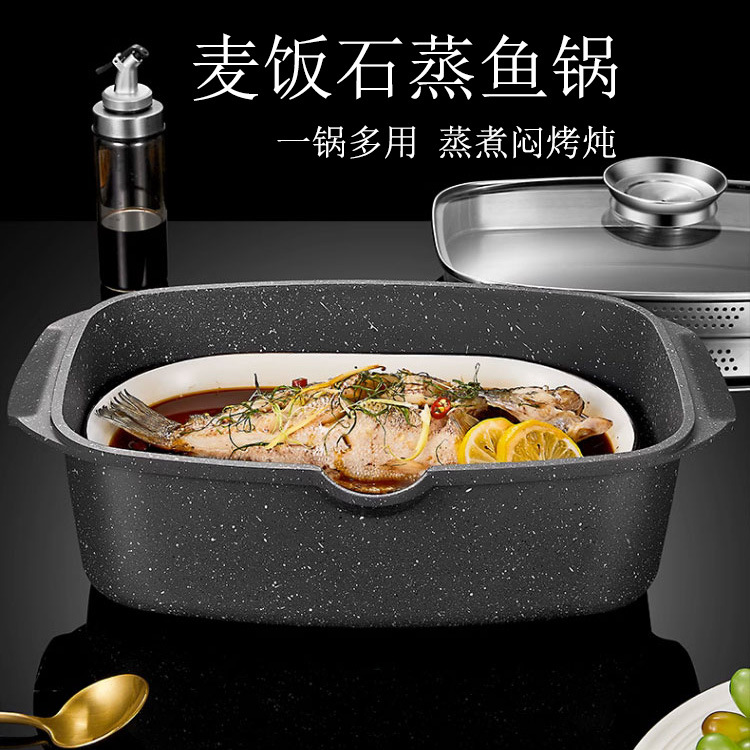 焼き魚鍋長方形家庭用増粘電磁調理器ガスストーブユニバーサル蒸し魚特別な医療石揚げ魚鍋商業