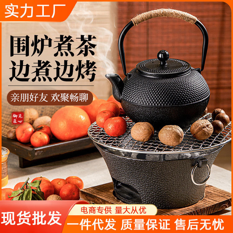囲炉裏でお茶を作る炉電気陶炉炭炉焼き網赤ティーポット家庭用屋外キャンプ一炉多目的携帯セット