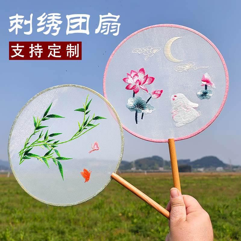 刺繍扇子、宮殿扇子、手作り扇子、観光名所刺繍扇子、古代風漢服ダンス扇子、写真撮影チェックイン扇子